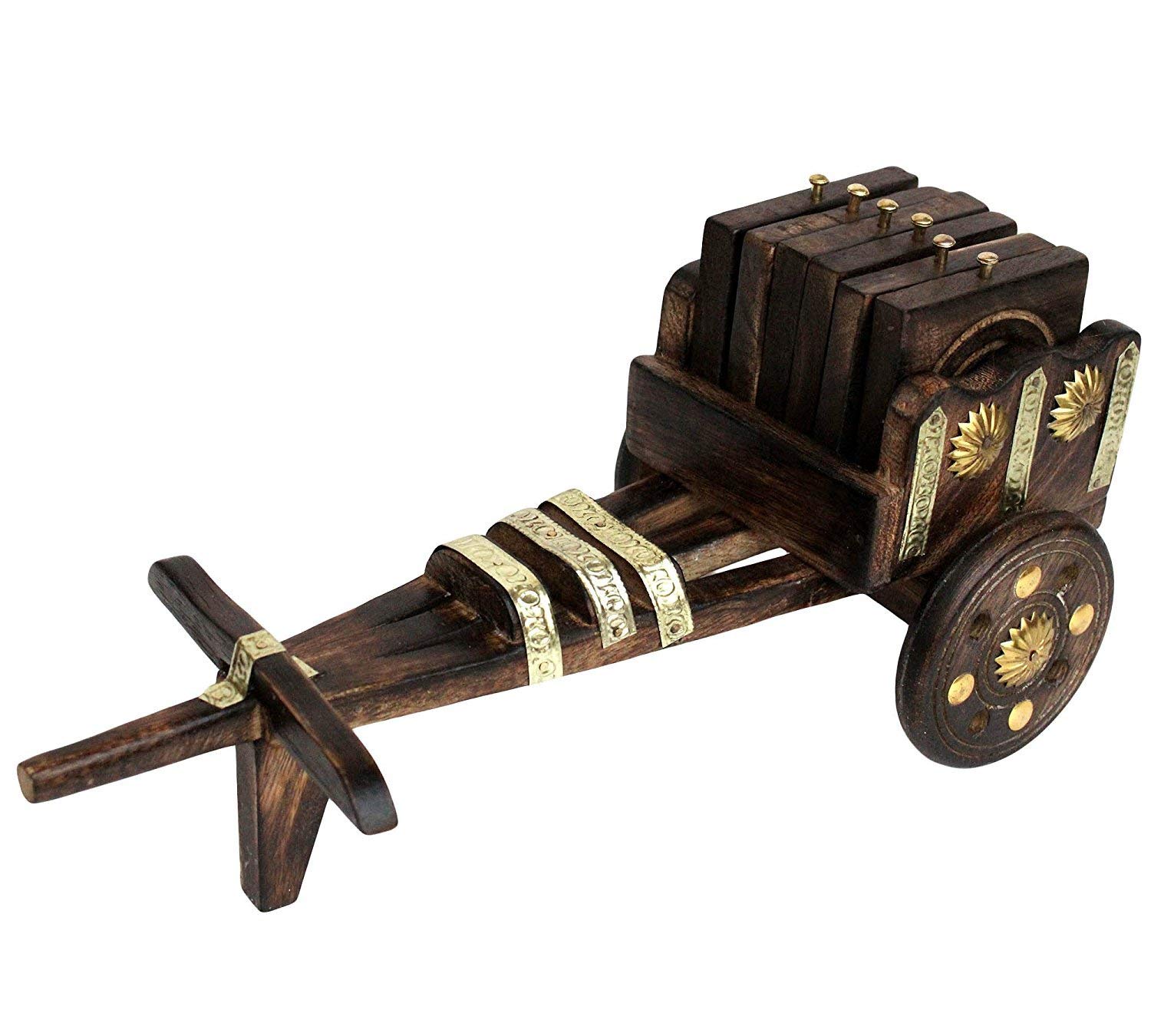 Wooden Bullock Cart Tea Coaster – Set of 6