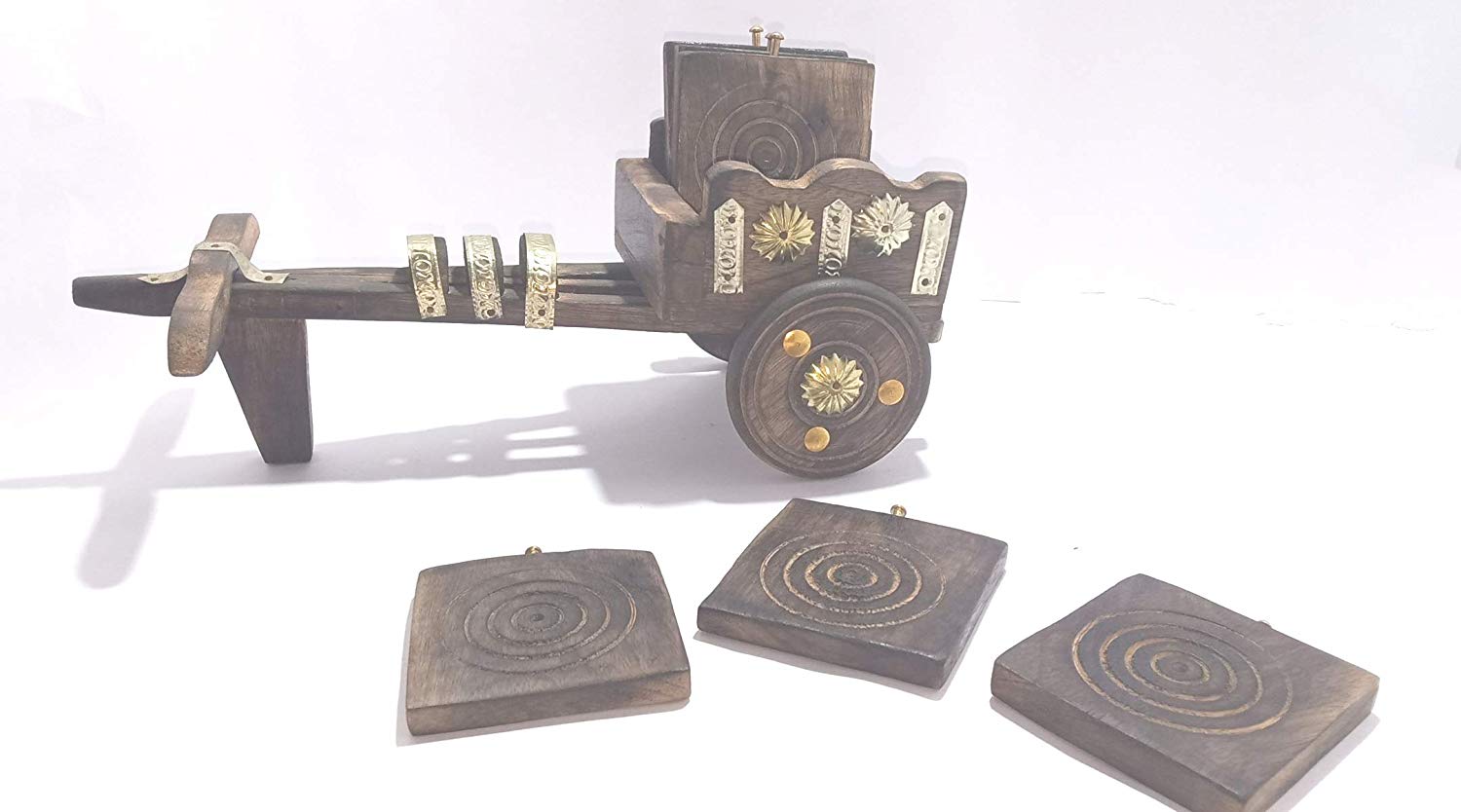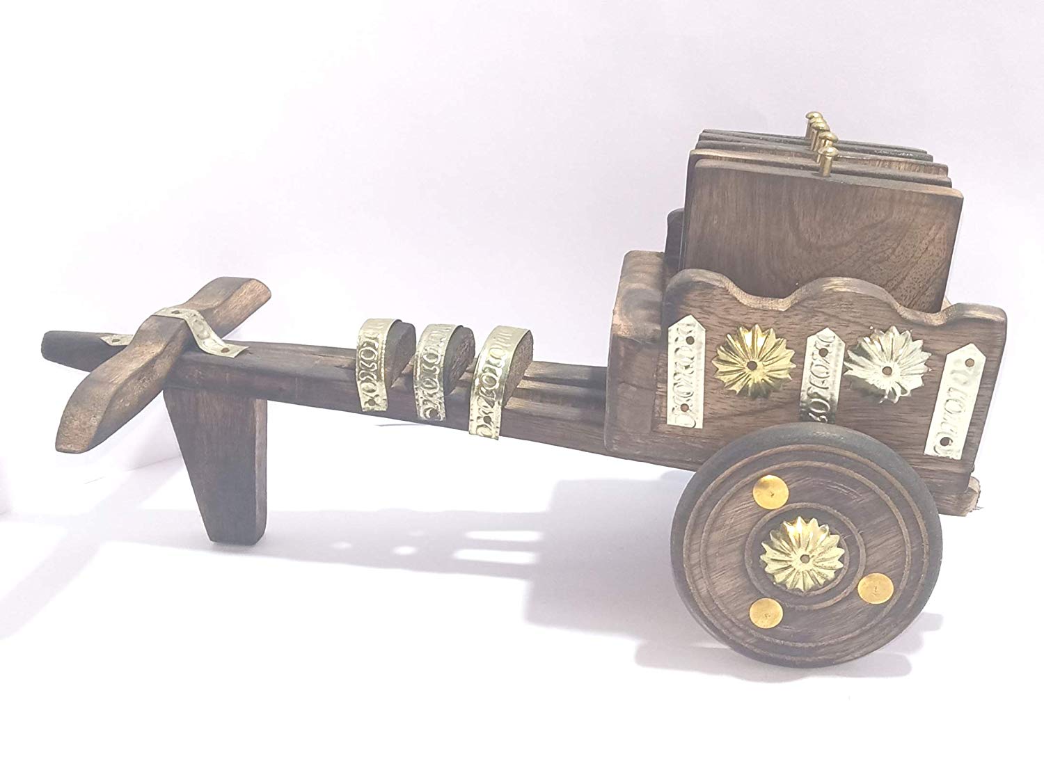 • Handicraft wooden bullock cart tea coaster