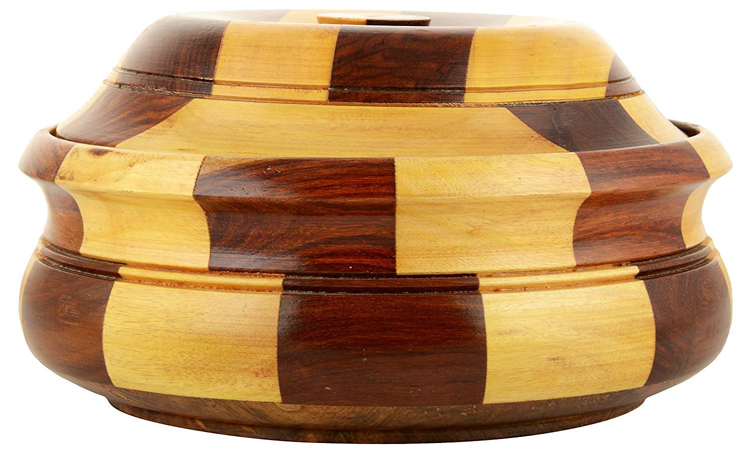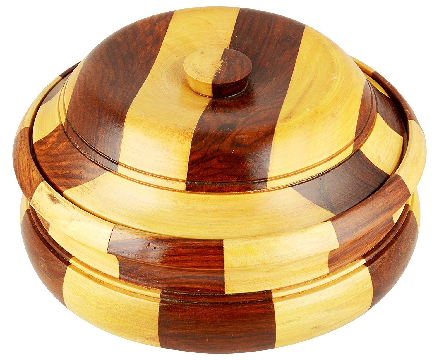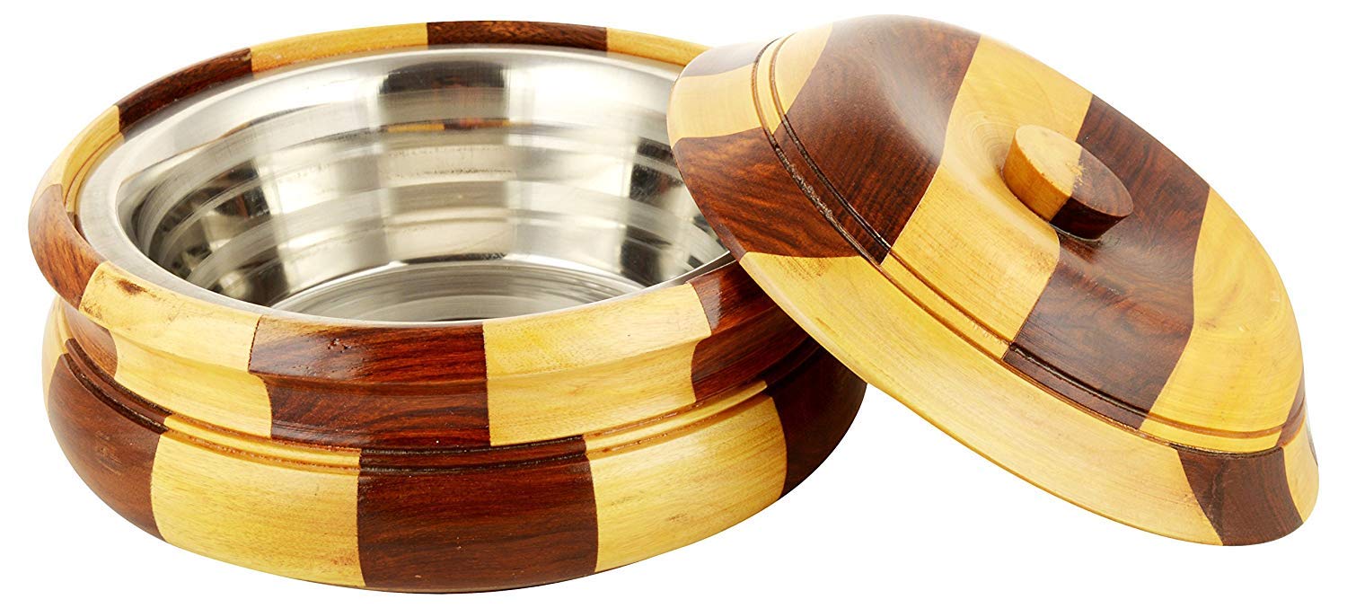 - Care Instructions: Keep away from fire, Wooden casserole in two colored wood as well as steel container inside
