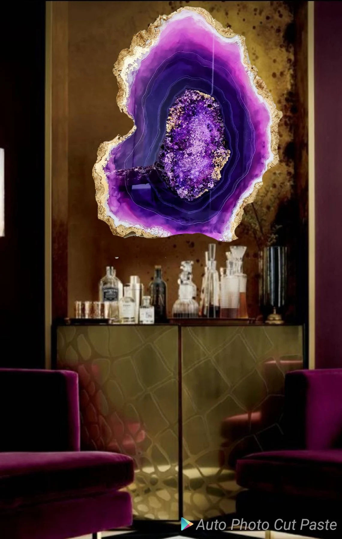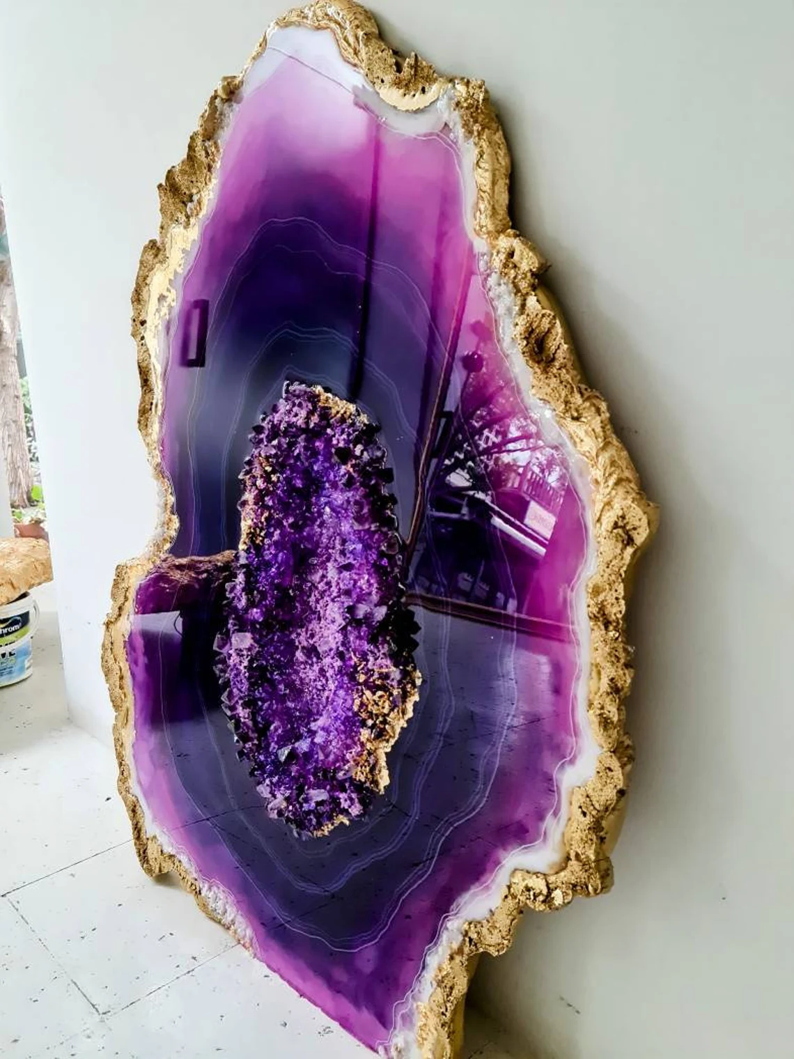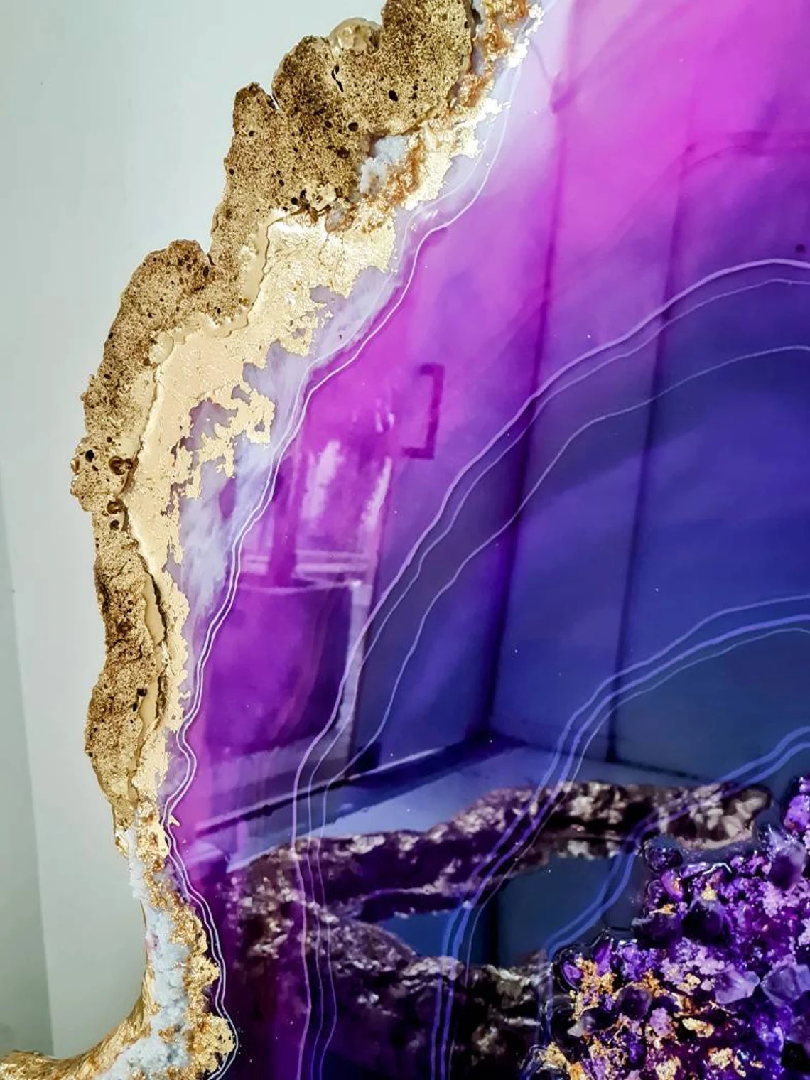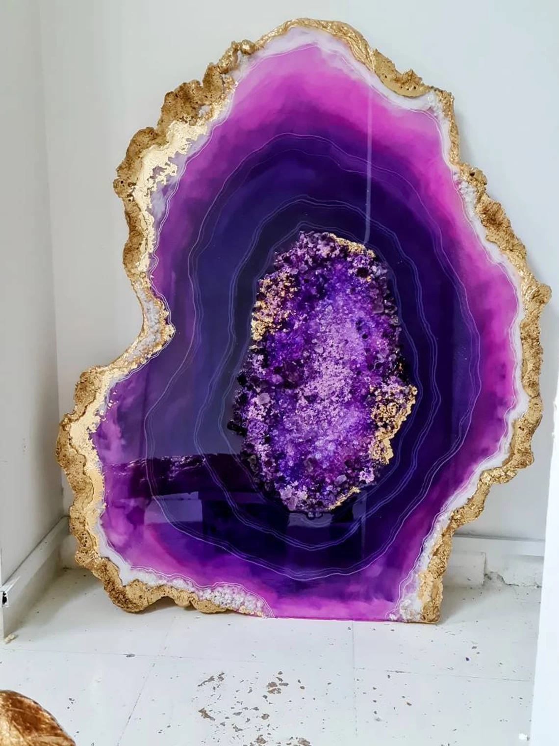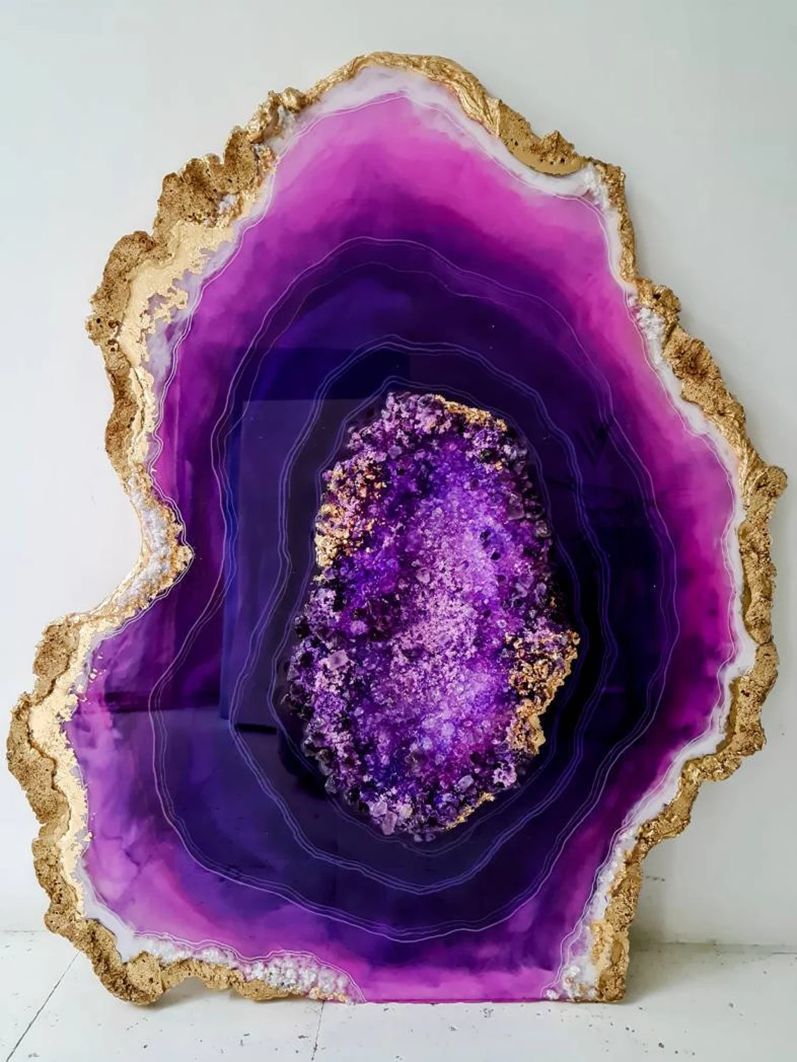 Fazzilet Geode Resin Painting, Large Geode Shape painting, Geode Agate Resin Art, Stone Crystal Painting ,Unique Resin Wall Art