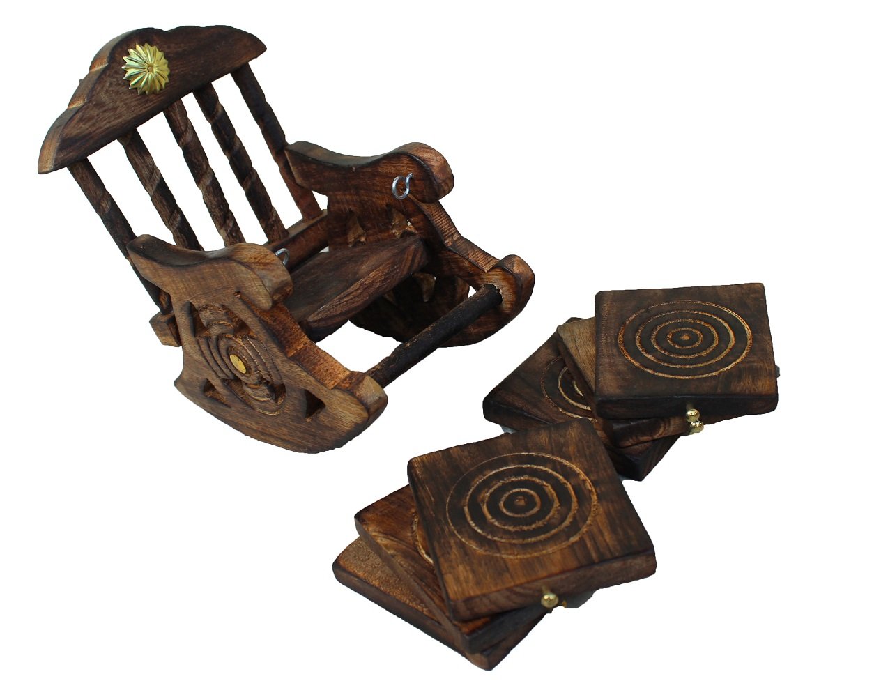 Beautiful Miniature Rocking Chair Design Wooden Tea Coffee Coaster Set
