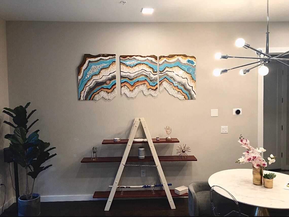 Beautiful black geode inspired artwork. Stunning and luxurious piece