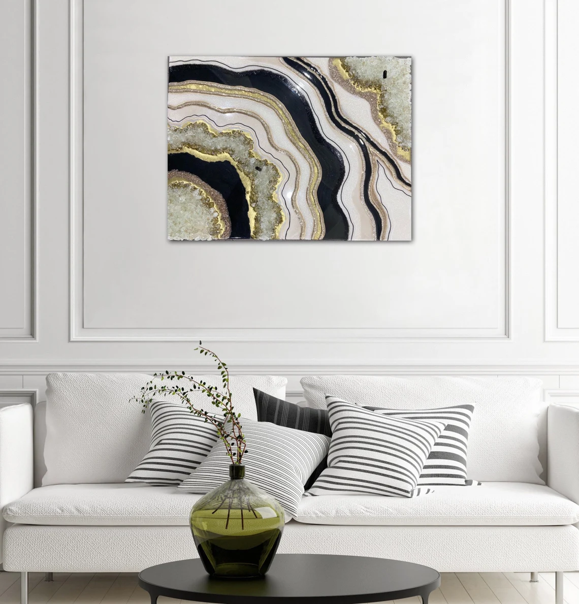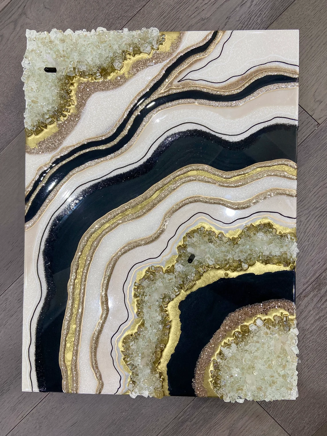 Beautiful black geode inspired artwork. Stunning and luxurious piece