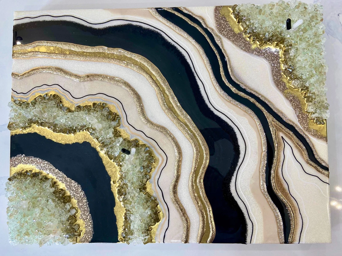 Fazzilet Black and gold Resin Geode Wall Art/Epoxy painting/3D art/ Crystal art/ epoxy resin art/ geode resin painting/ geode wall decor/modern art/