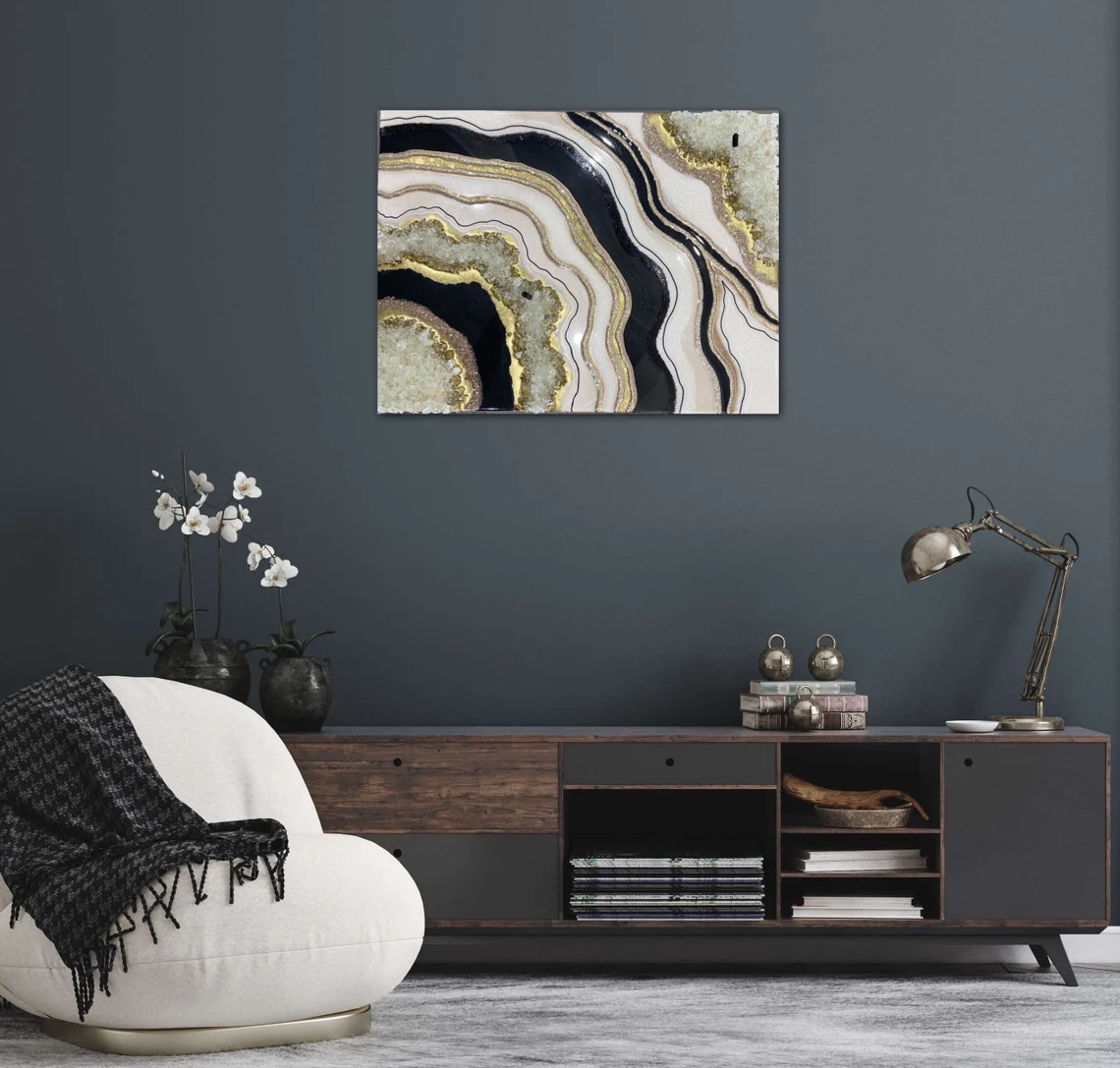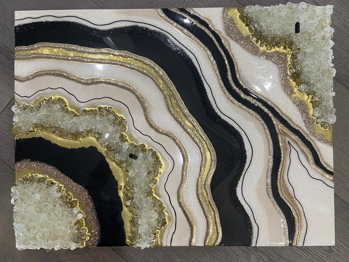 Be the first to review “Fazzilet Black and gold Resin Geode Wall Art/Epoxy painting/3D art/ Crystal art/ epoxy resin art/ geode resin painting/ geode wall decor/modern art/”
