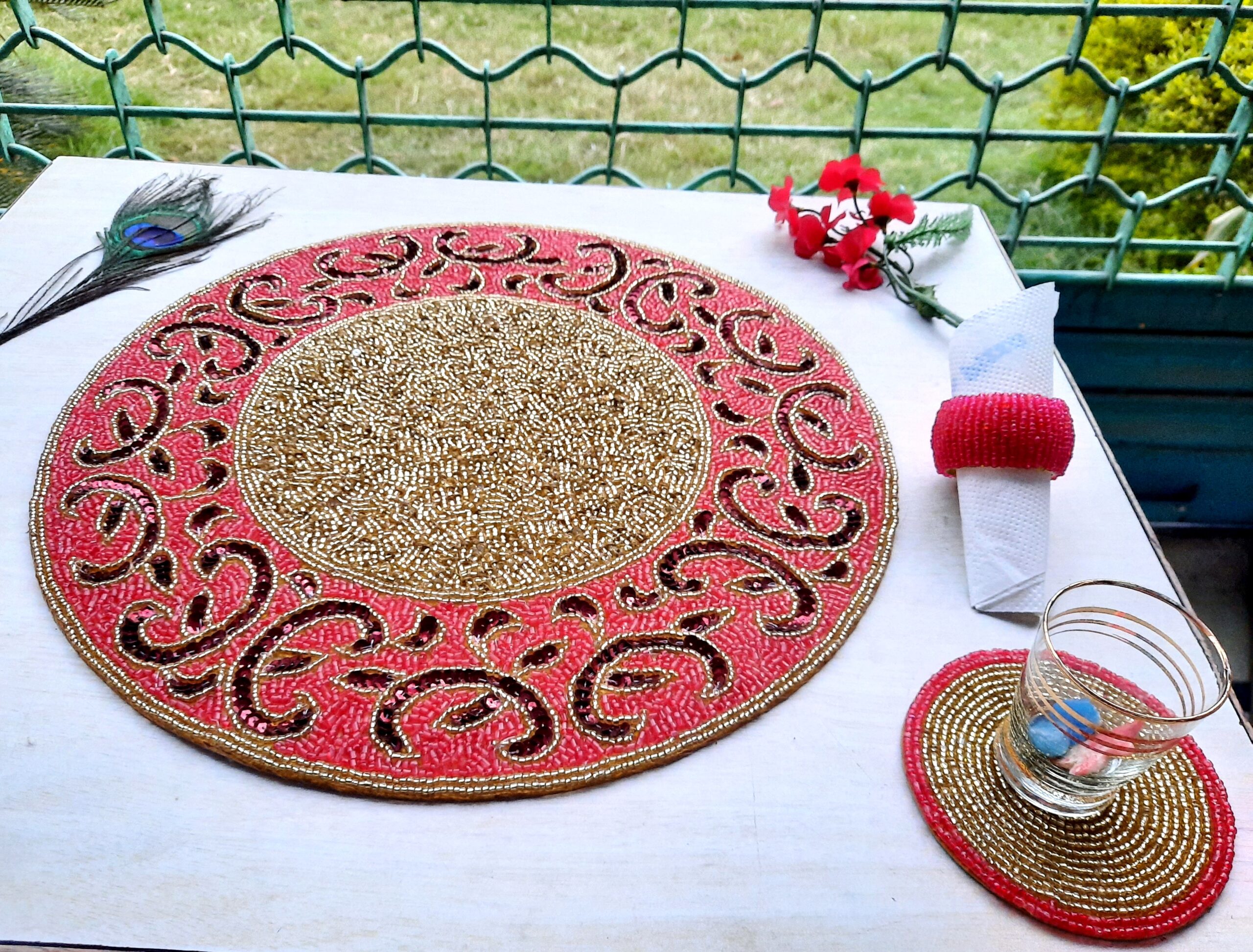 - Item: Decorative Beaded placemat / Table mat for Centre table, Dining table or Side table