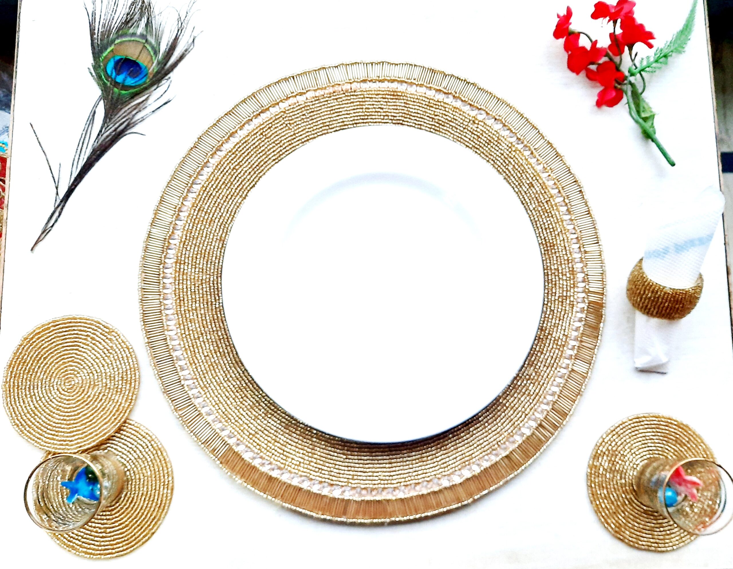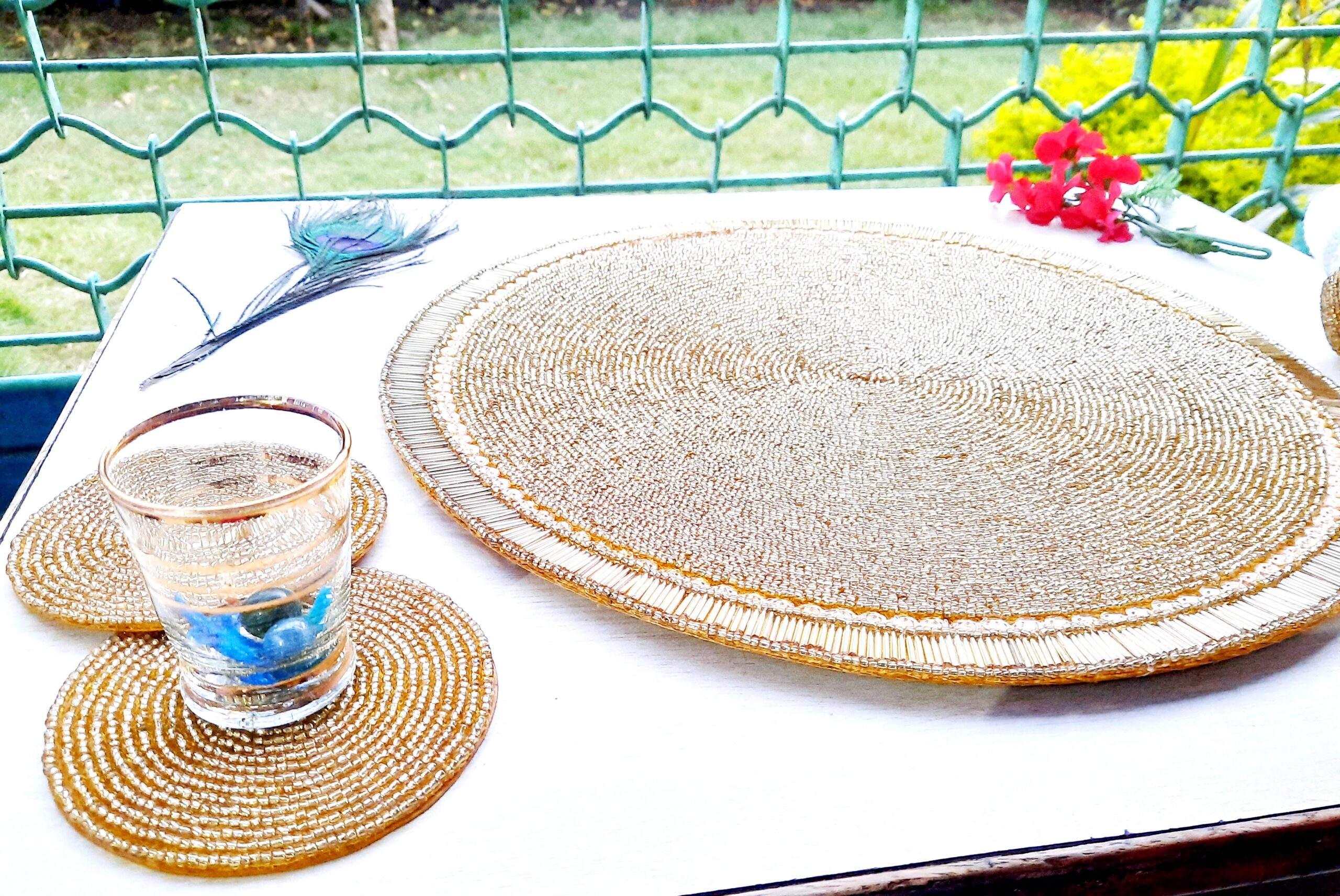 - While you can use them all year round, Beaded placemat is especially suitable for formal dinners and events. Also an ideal gift for Birthdays, anniversaries, House warming, Diwali, Christmas or any festive occasion.