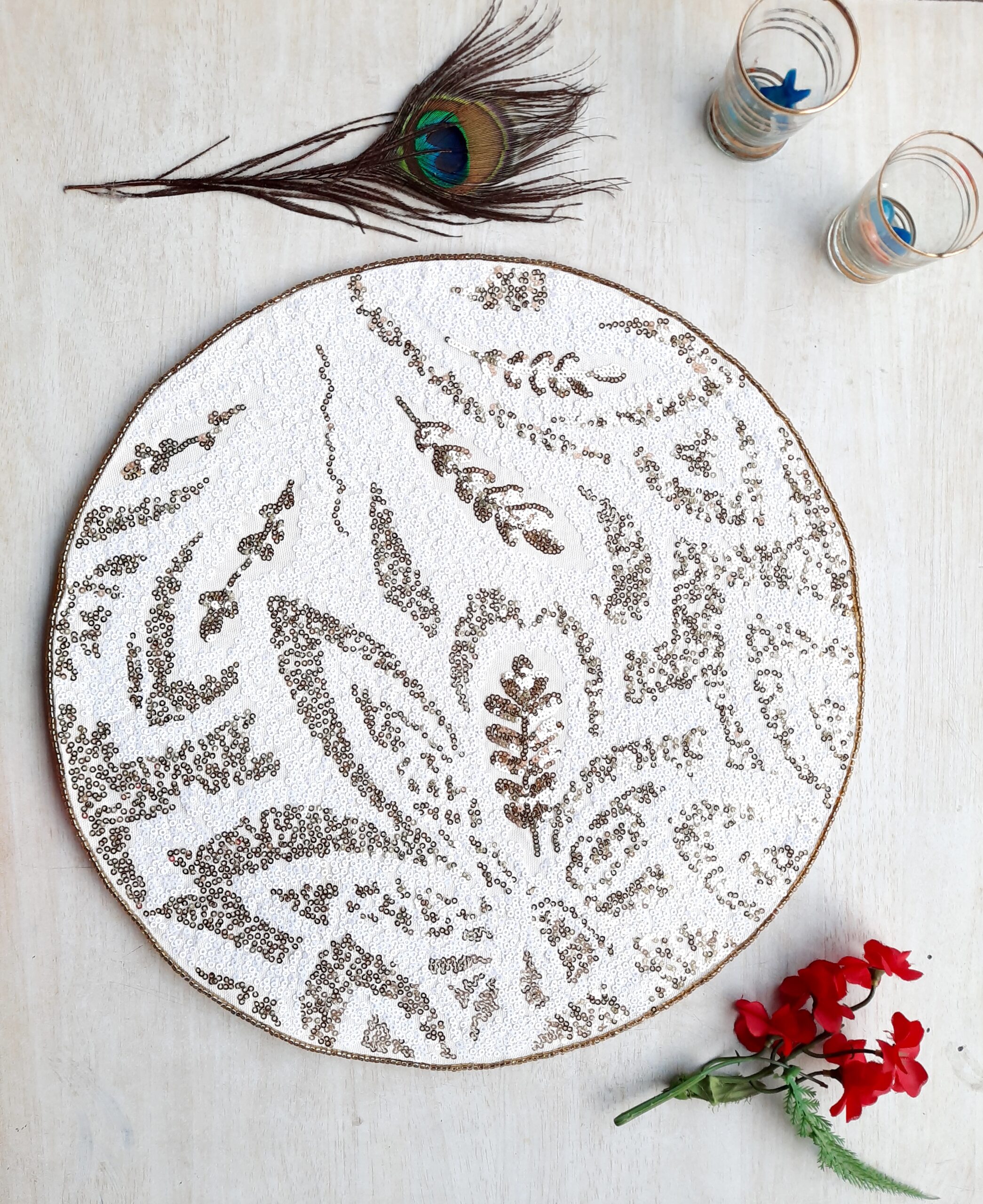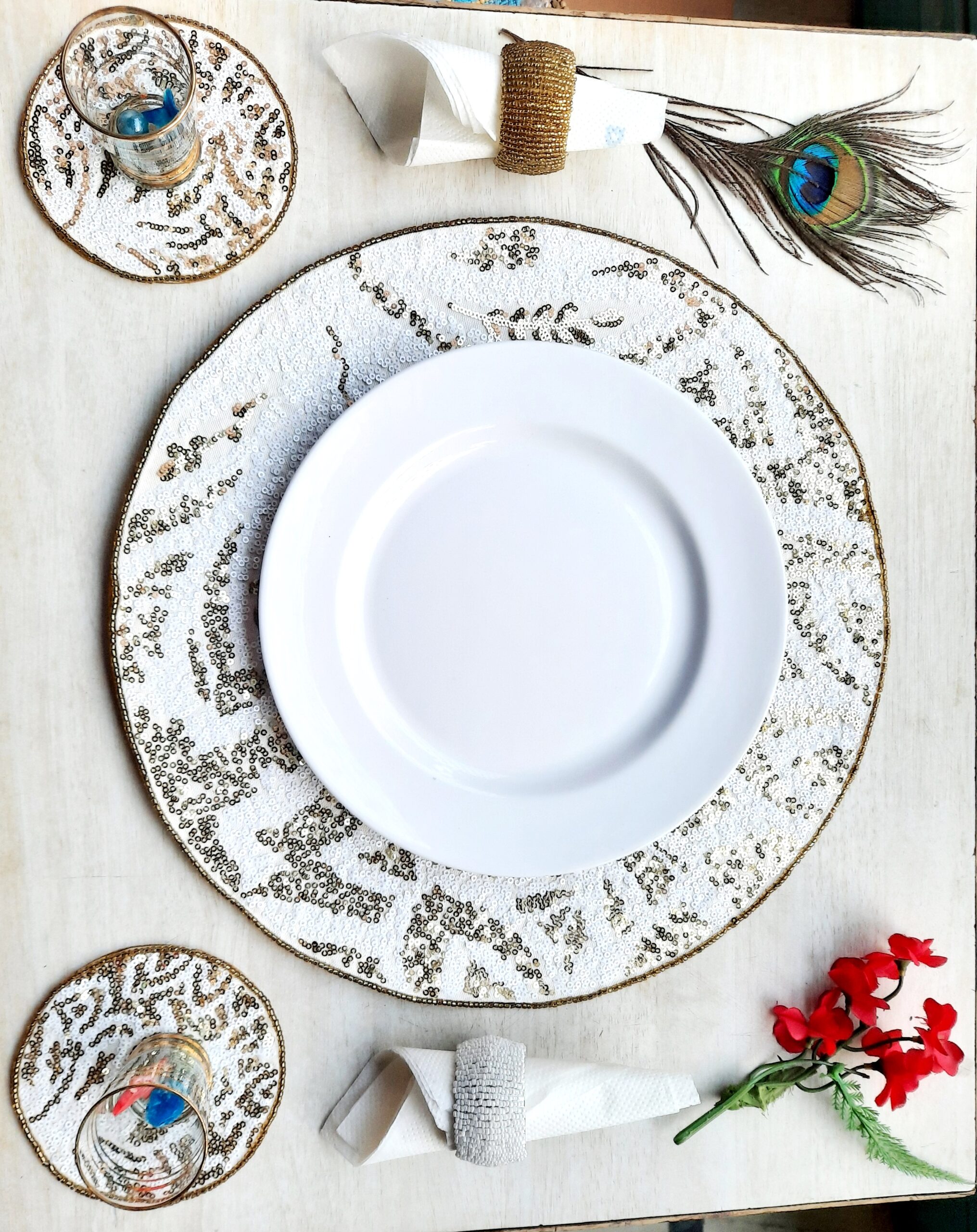 • While you can use them all year round, Beaded placemat is especially suitable for formal dinners and events. Also an ideal gift for Birthdays, anniversaries, House warming, Diwali, Christmas or any festive occasion.