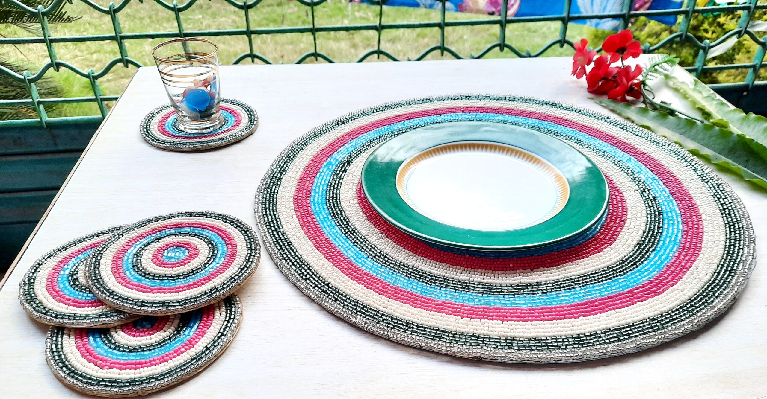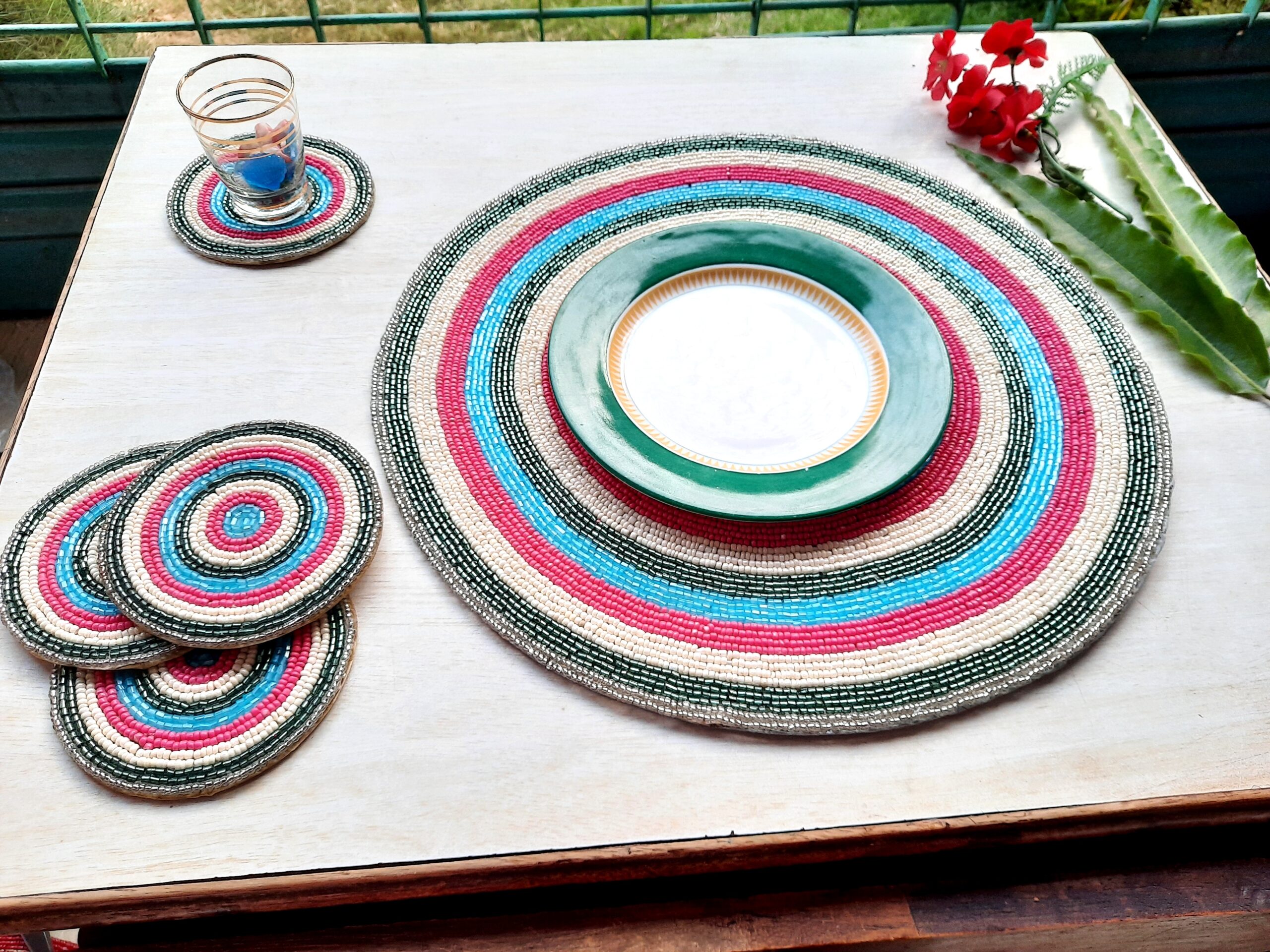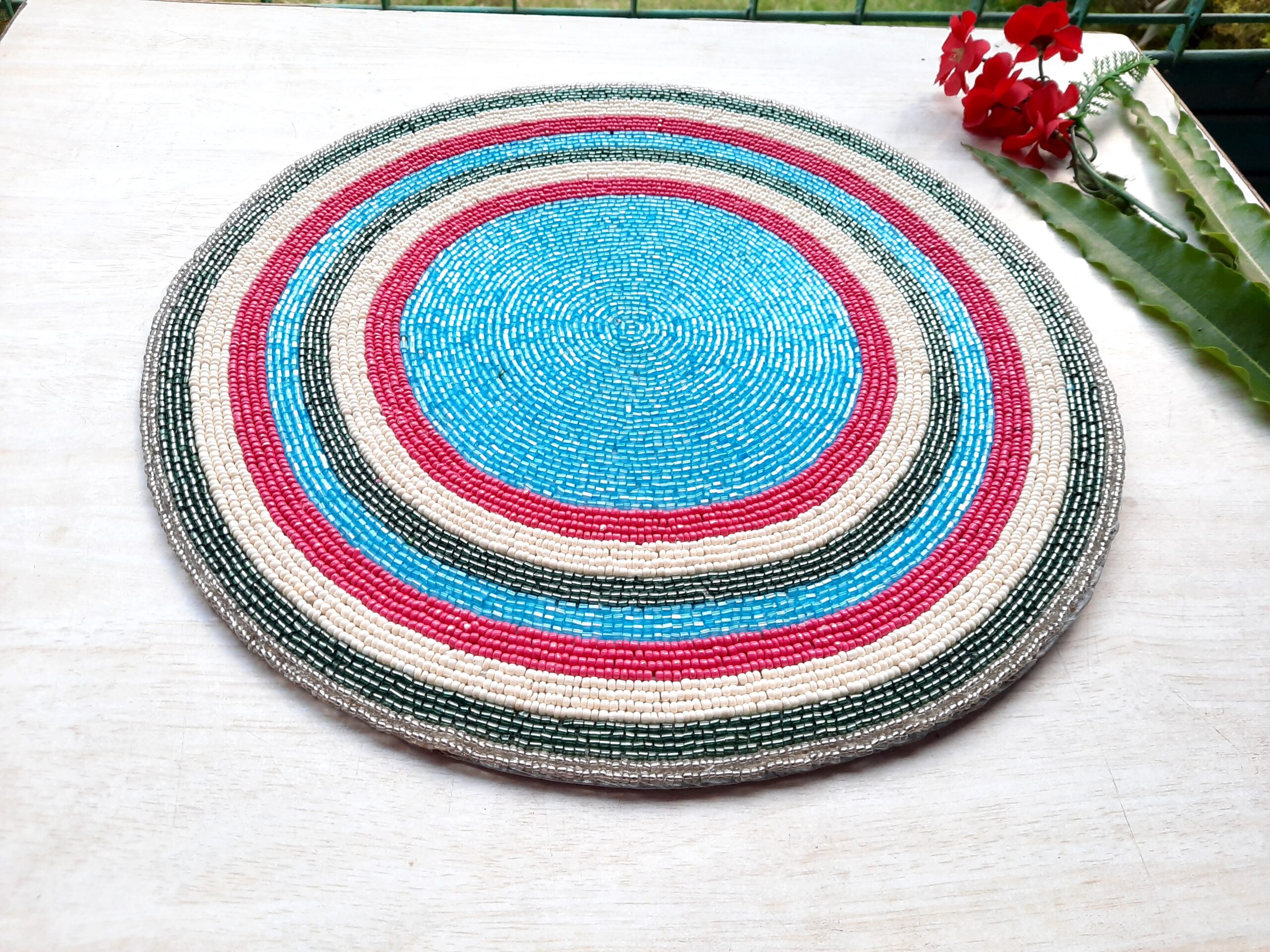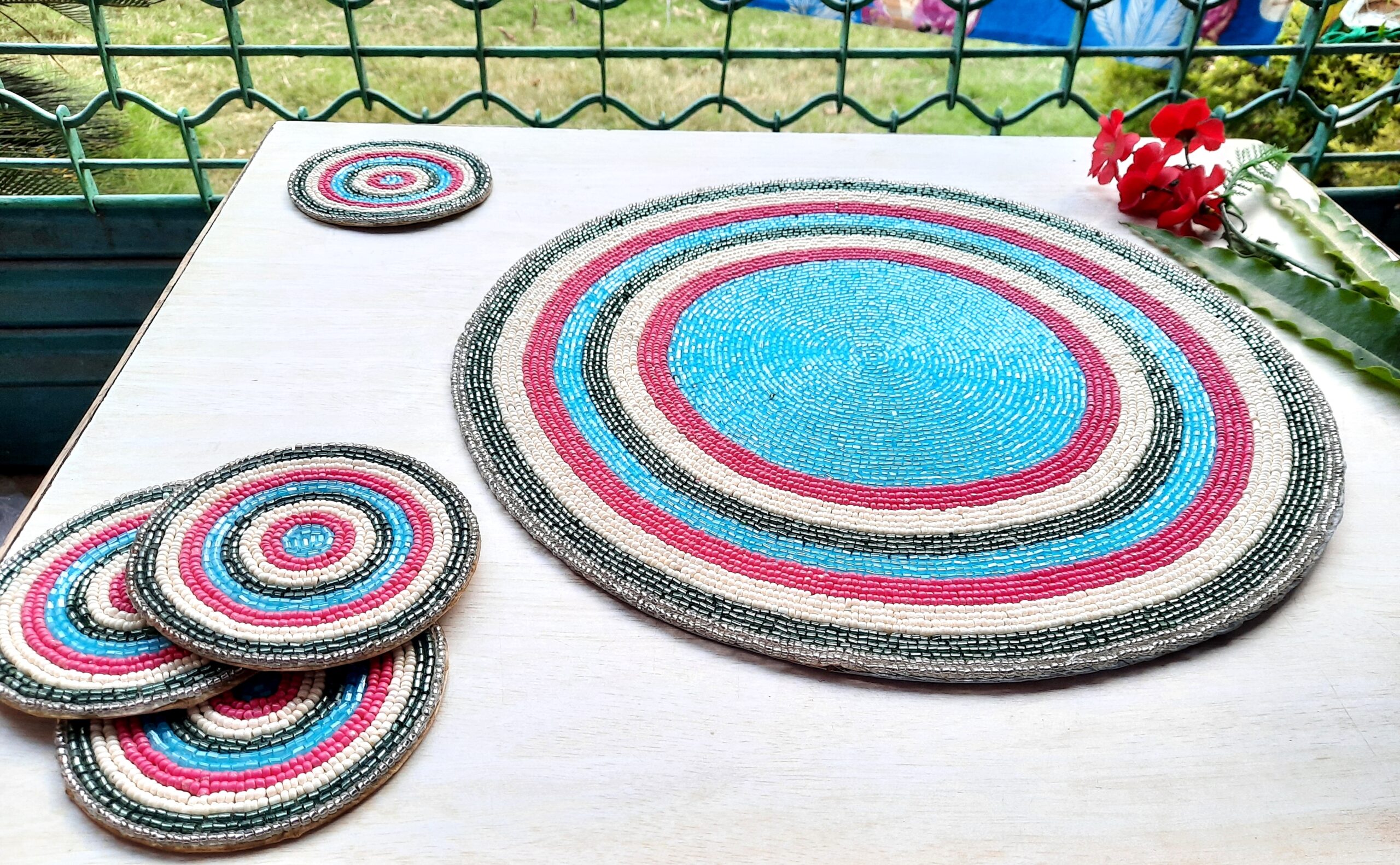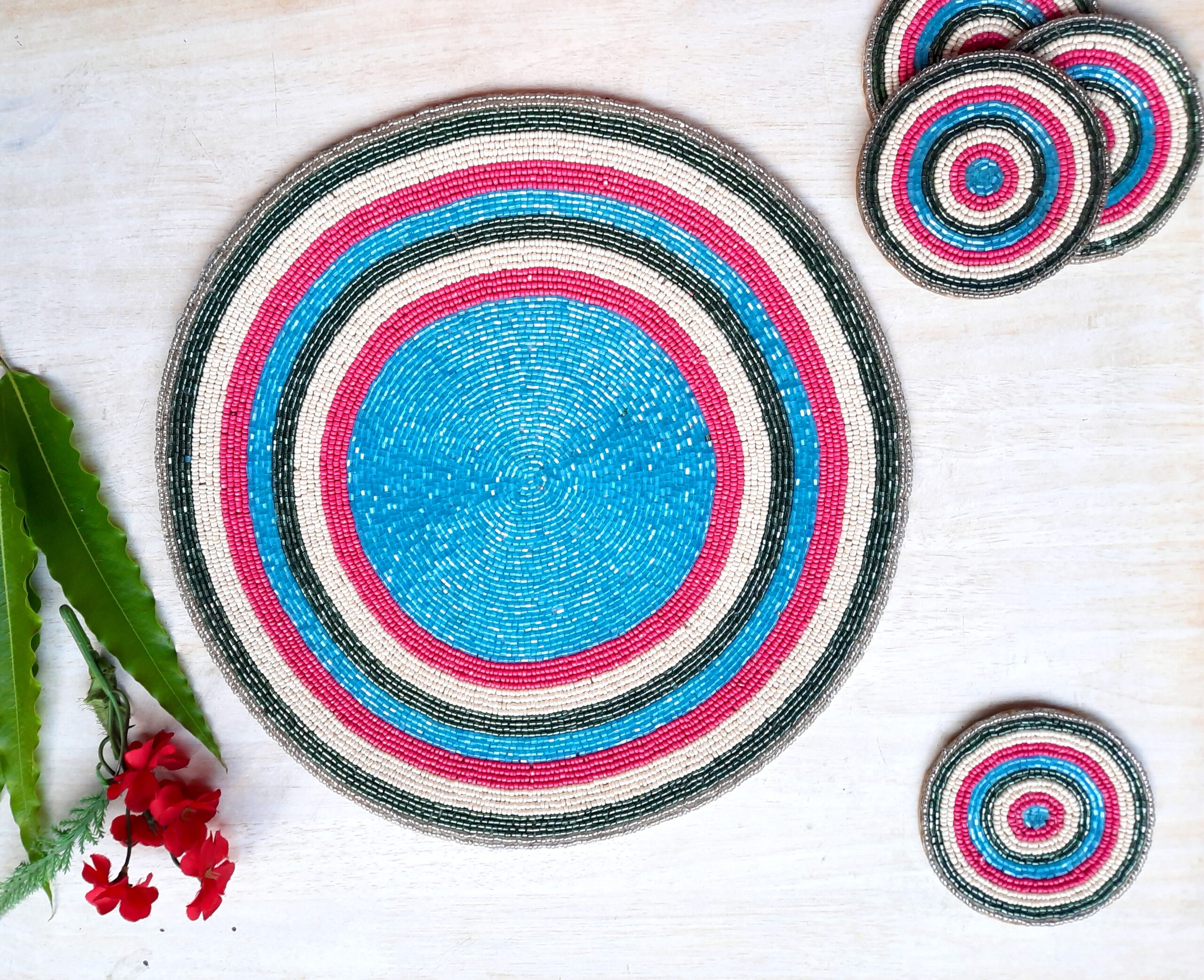 Fazzilet Handcrafted Multicoloured Beaded Round Table Mat – Round