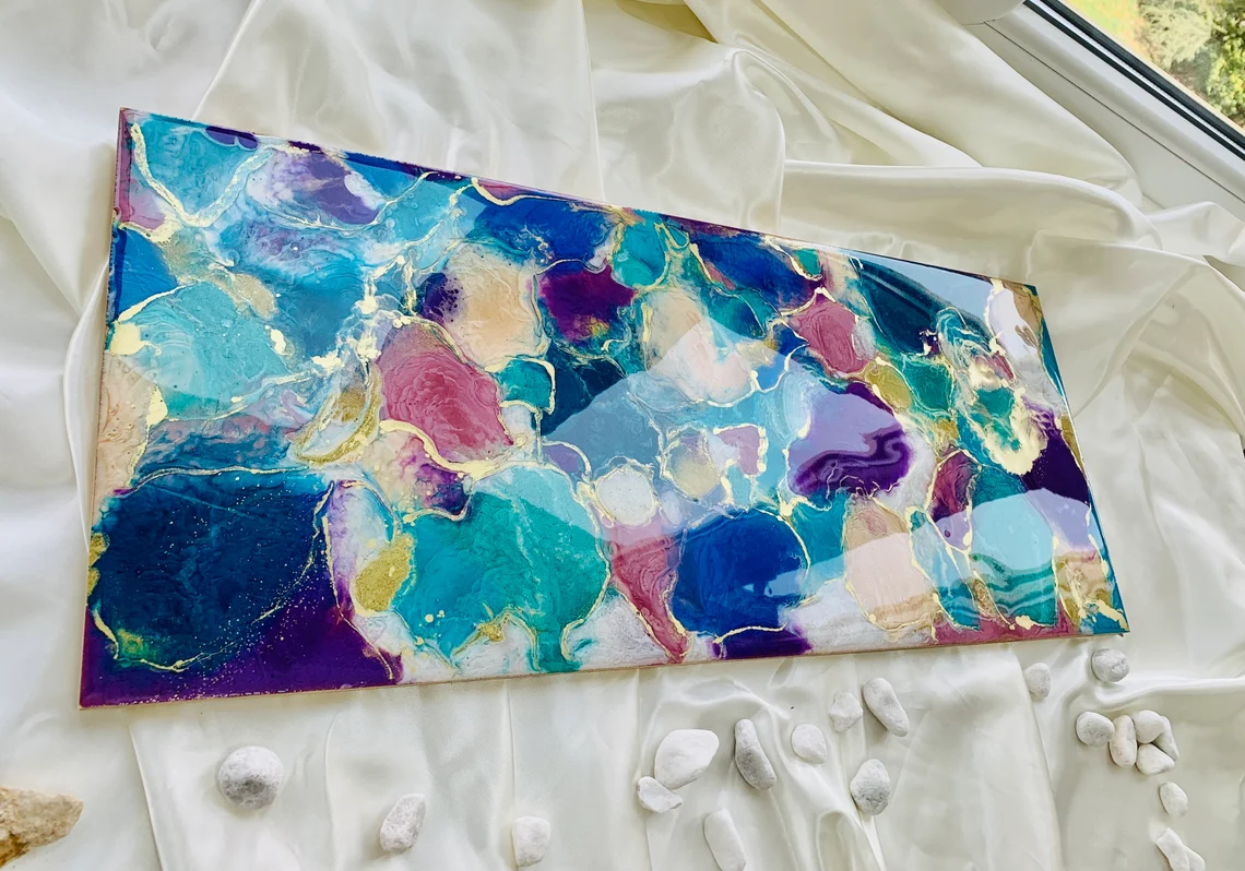 Each one is created with high quality resin and individually handcrafted. Resin is a highly reflective medium which will catch anyone’s eye walking into the room. All tables are finished to the highest standard. The epoxy resin is very strong & durable with specialized UV resistance. The tables are delivered flat packed. Simply bolt the legs.