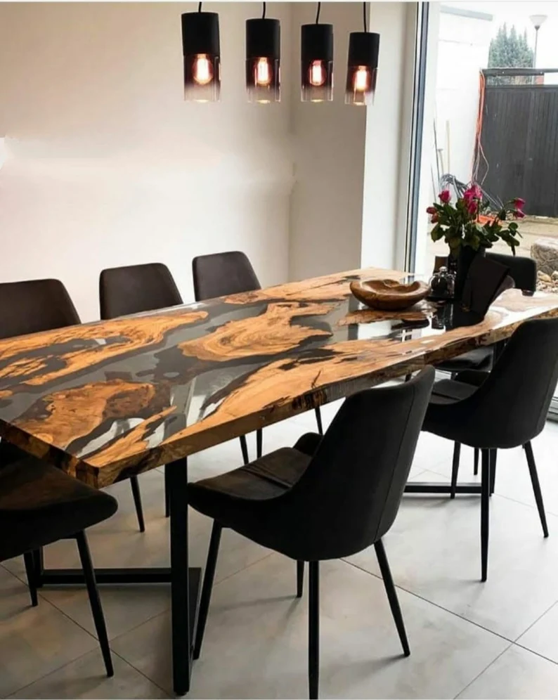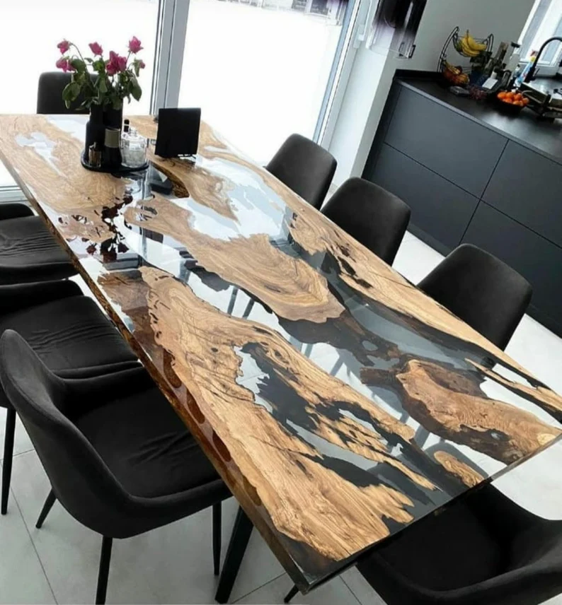 FAZZILET Handmade epoxy Dining table, Transparent Furniture Vivid Edge, Special Epoxy Wood Resin table, Home decoration, living room furniture