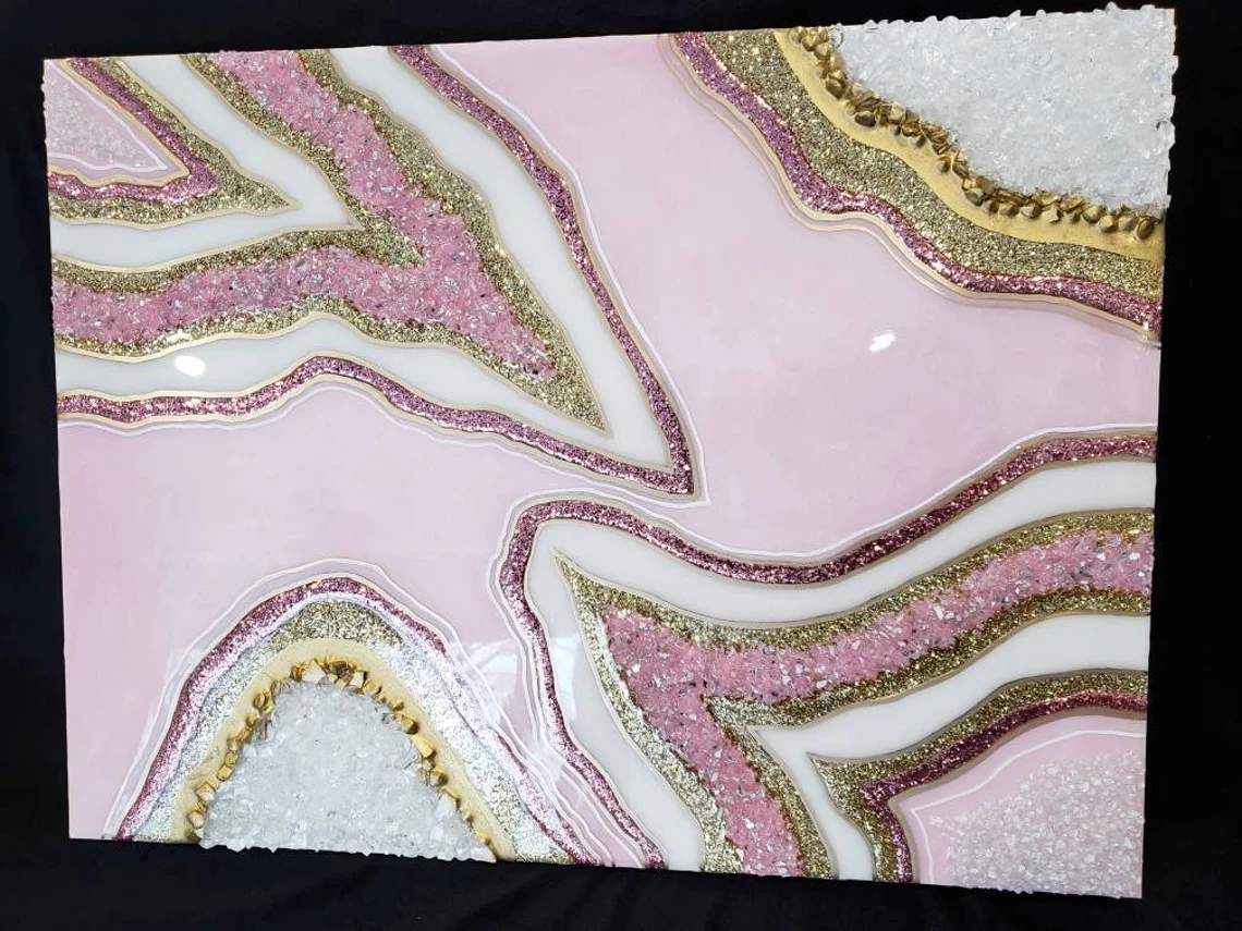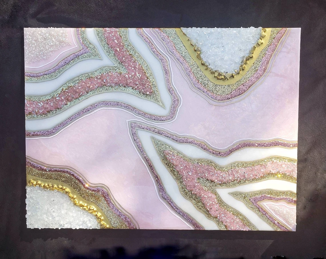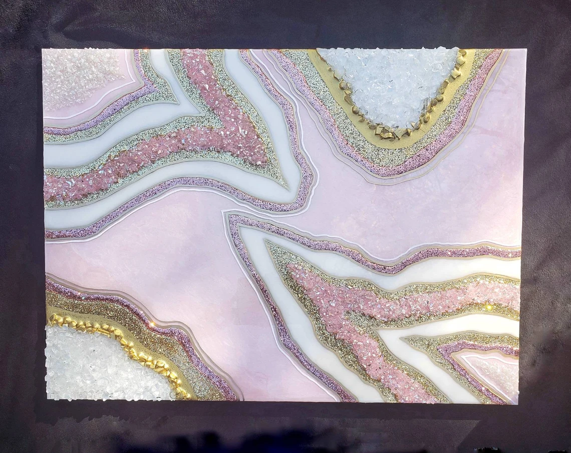 Fazzilet Resin Geode Wall Art / Pink and Rose Gold Geode Resin Wall Art / Resin Painting / Epoxy Painting / Luxury Wall Art / Abstract Artwork