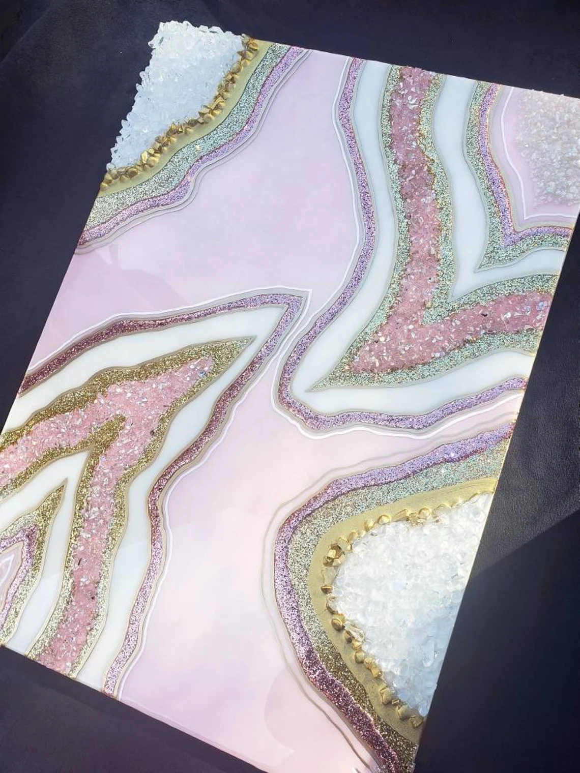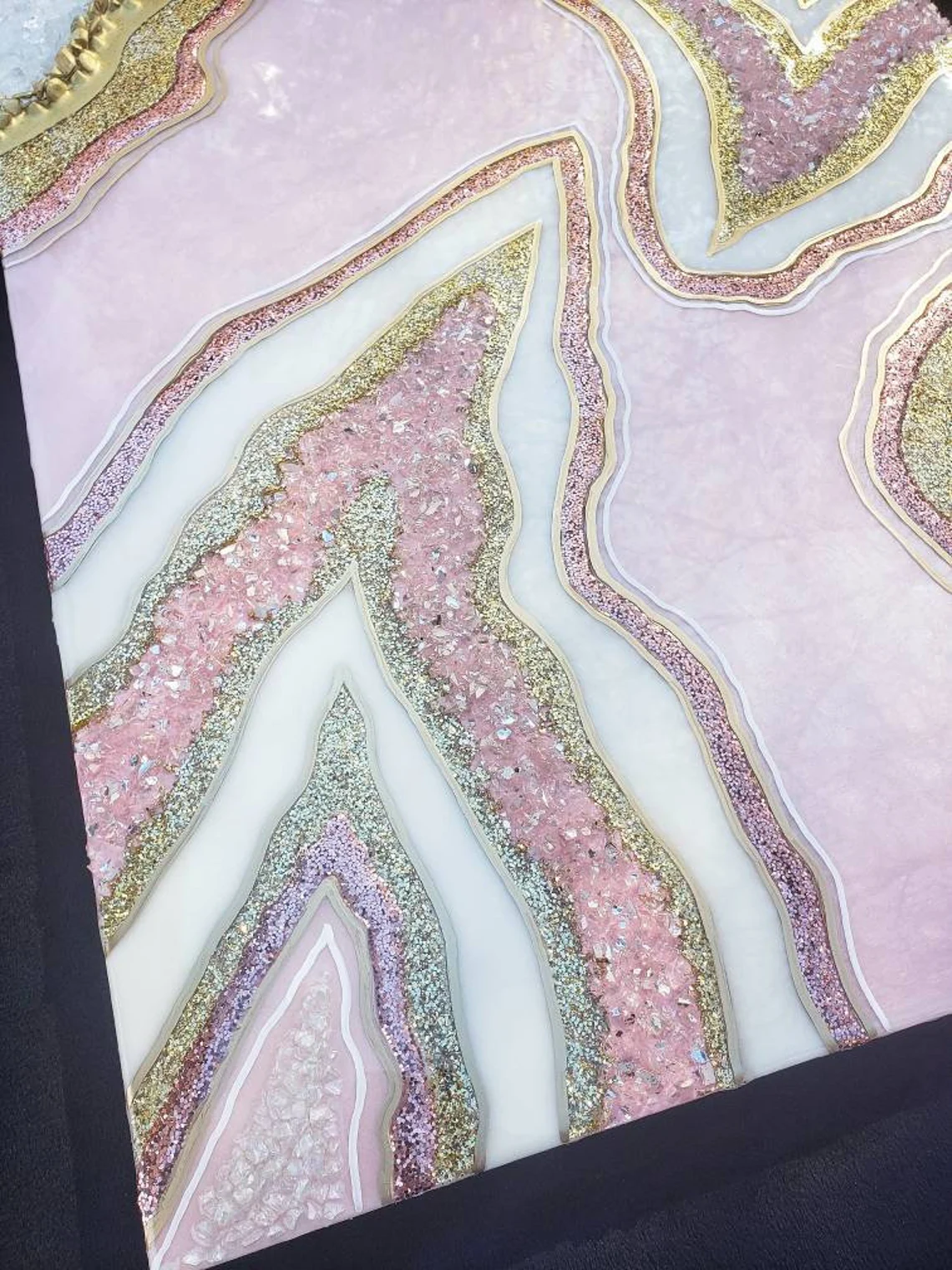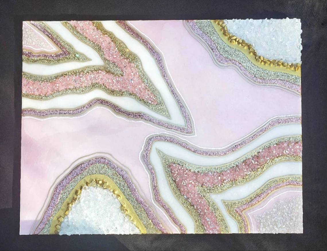 Fazzilet Resin Geode Wall Art / Pink and Rose Gold Geode Resin Wall Art / Resin Painting / Epoxy Painting / Luxury Wall Art / Abstract Artwork
