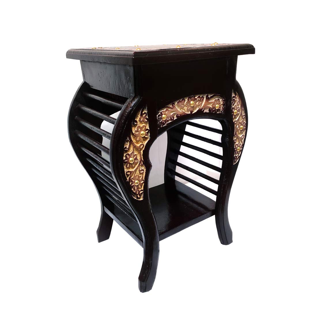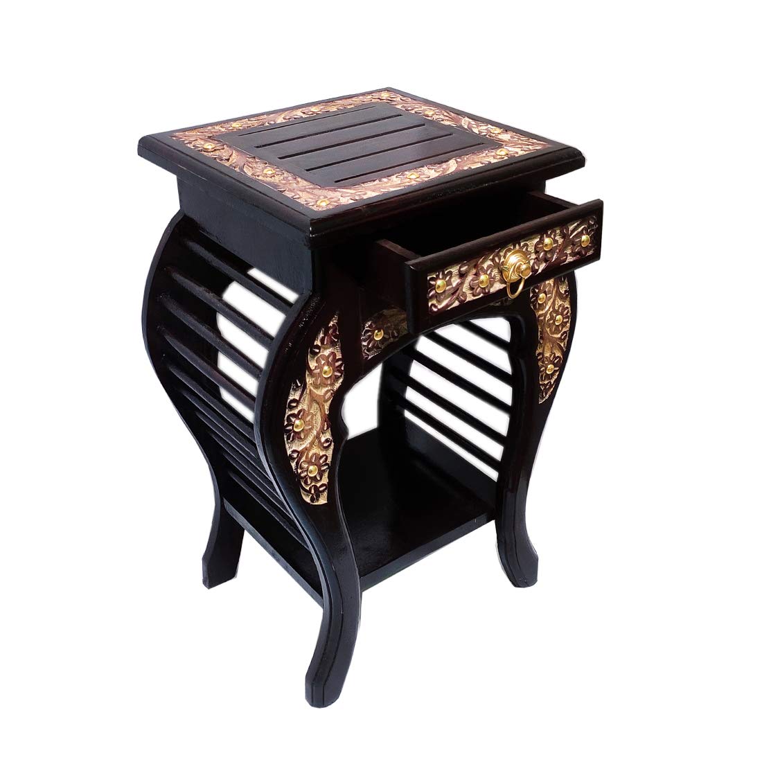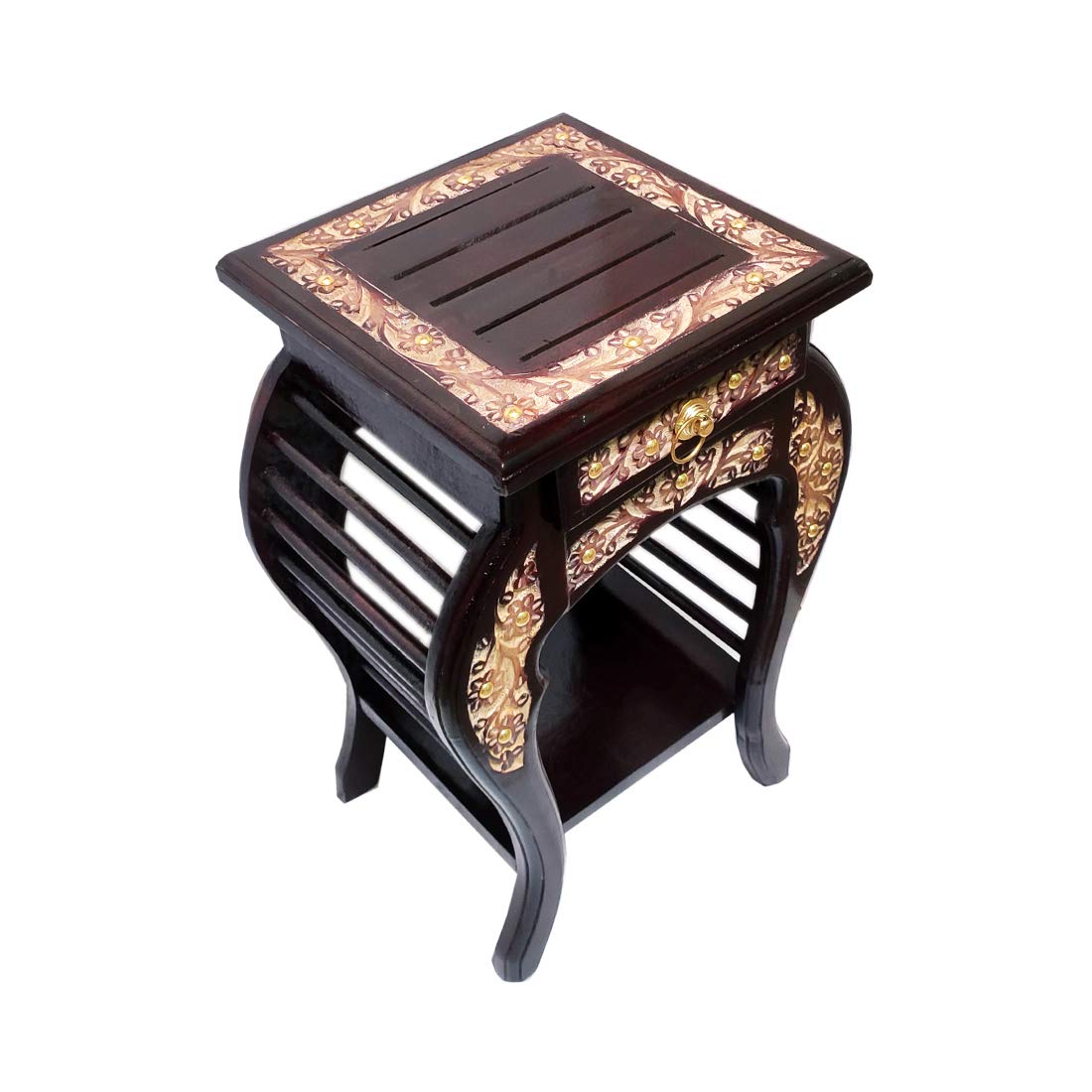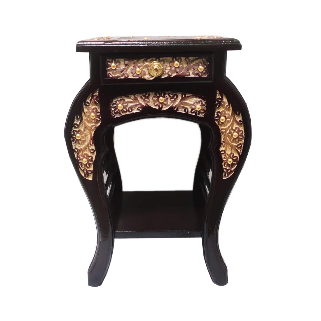 Fazzilet Rose Wood Side Table for Living Room with Drawer / Multipurpose End Table / Bedside Table Enhanced Floral Carved