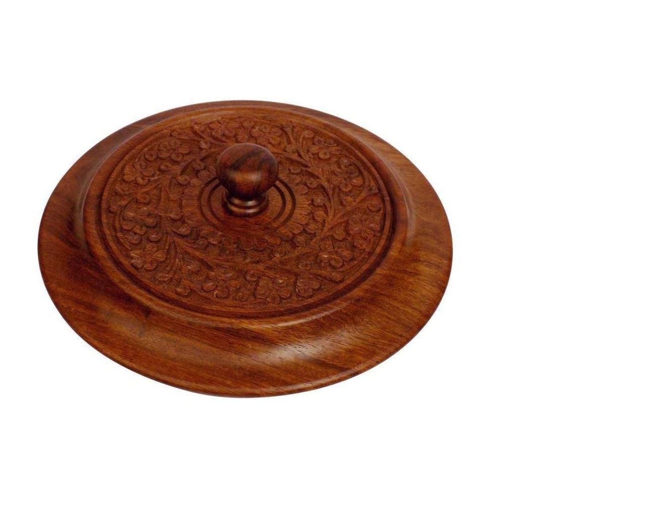 Handicraft Wooden Stainless Steel Bread CHAPATI Casserole with Engraved Design (Big)