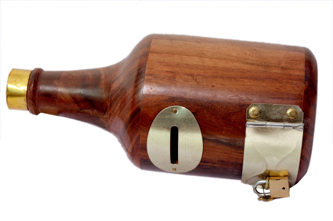 Handmade Wooden Bottle Shape Money Bank / Piggy Bank