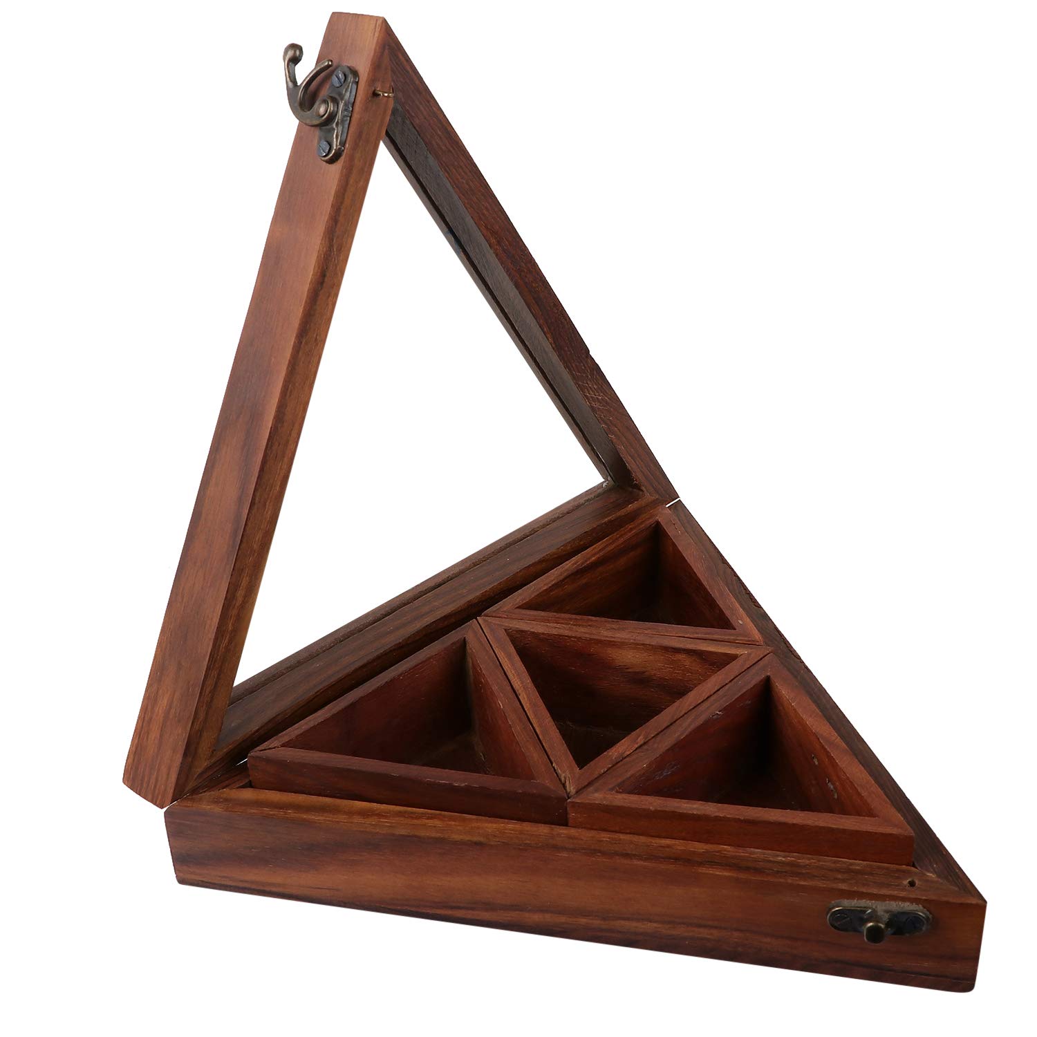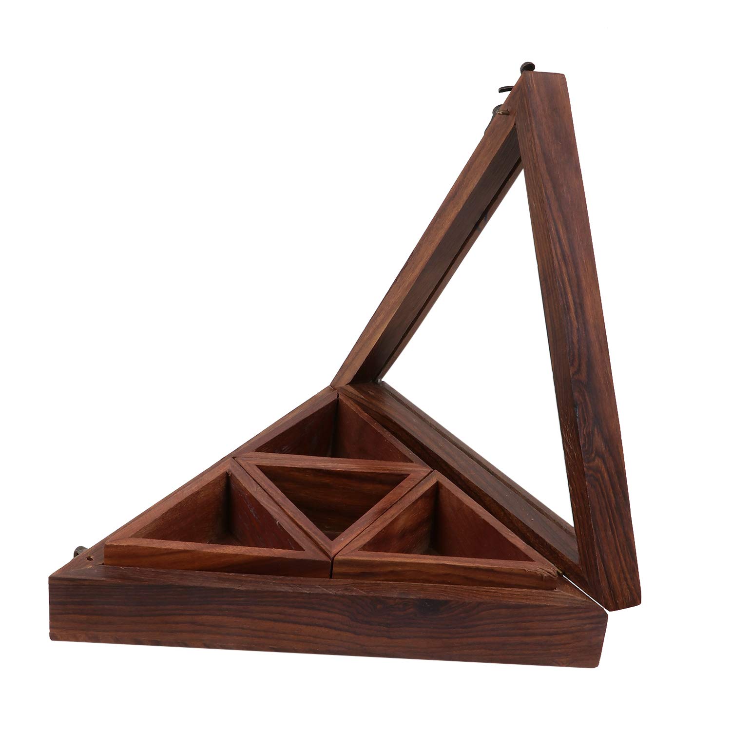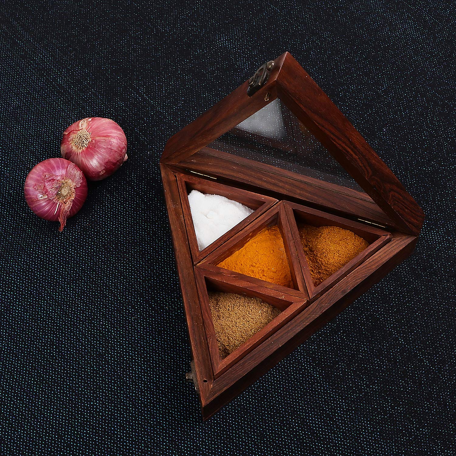 Pure Sheesham Wooden Masala / Spice Box with Spoon – Triangular Design