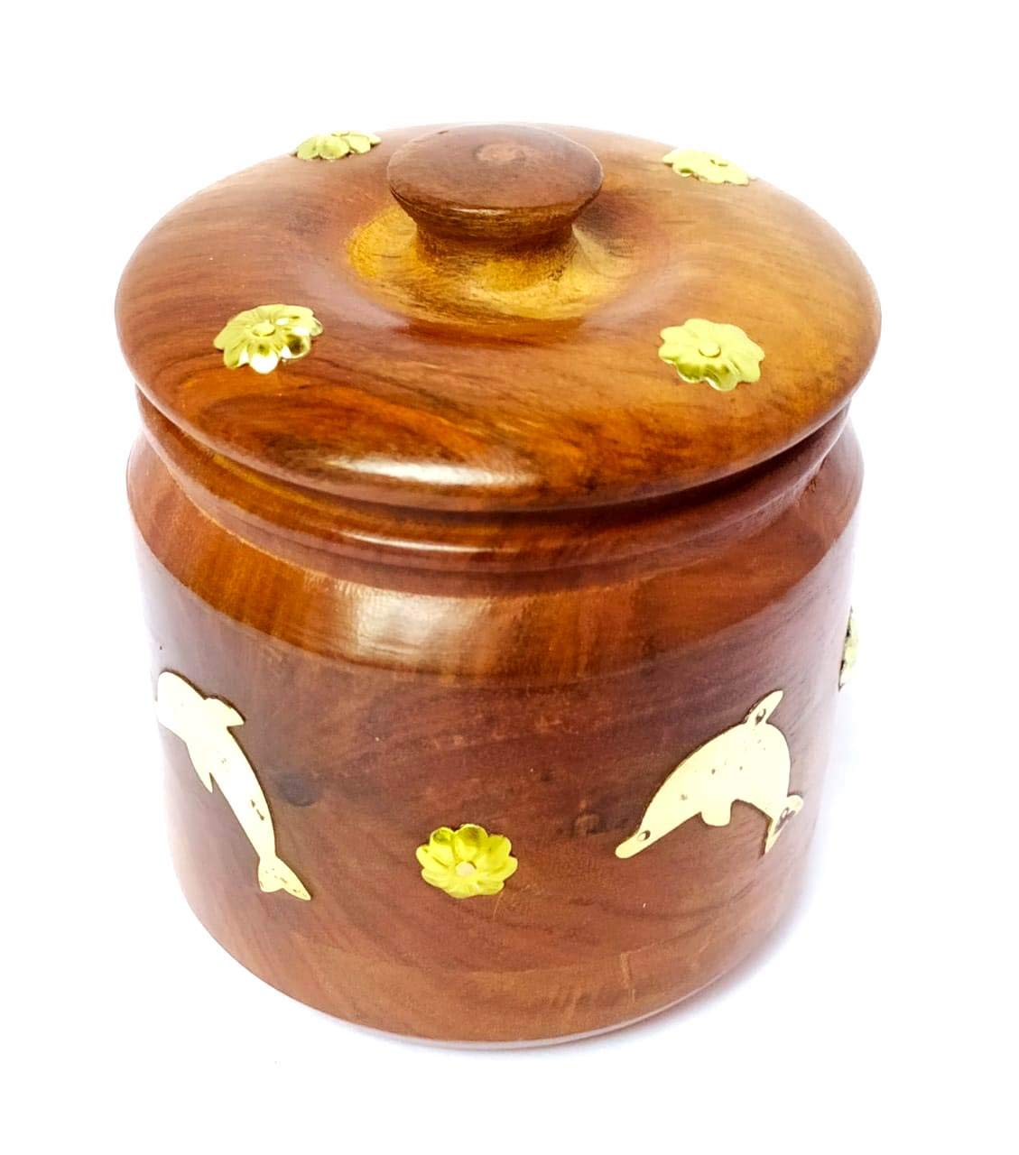 Sheesham Wooden Table Top Masala Dabba Container/Jars Cum Kitchen Spice Box
