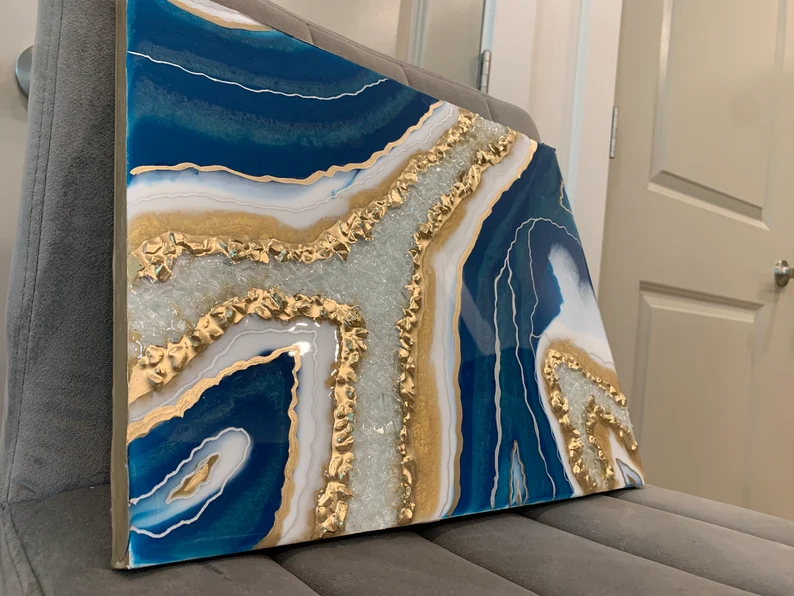Fazzilet Geode Resin Painting, Large Geode Shape painting, Geode Agate Resin Art, Stone Crystal Painting ,Unique Resin Wall Art