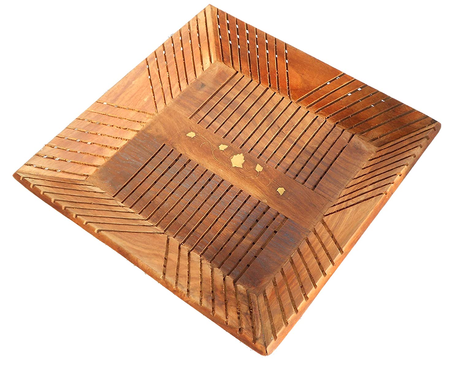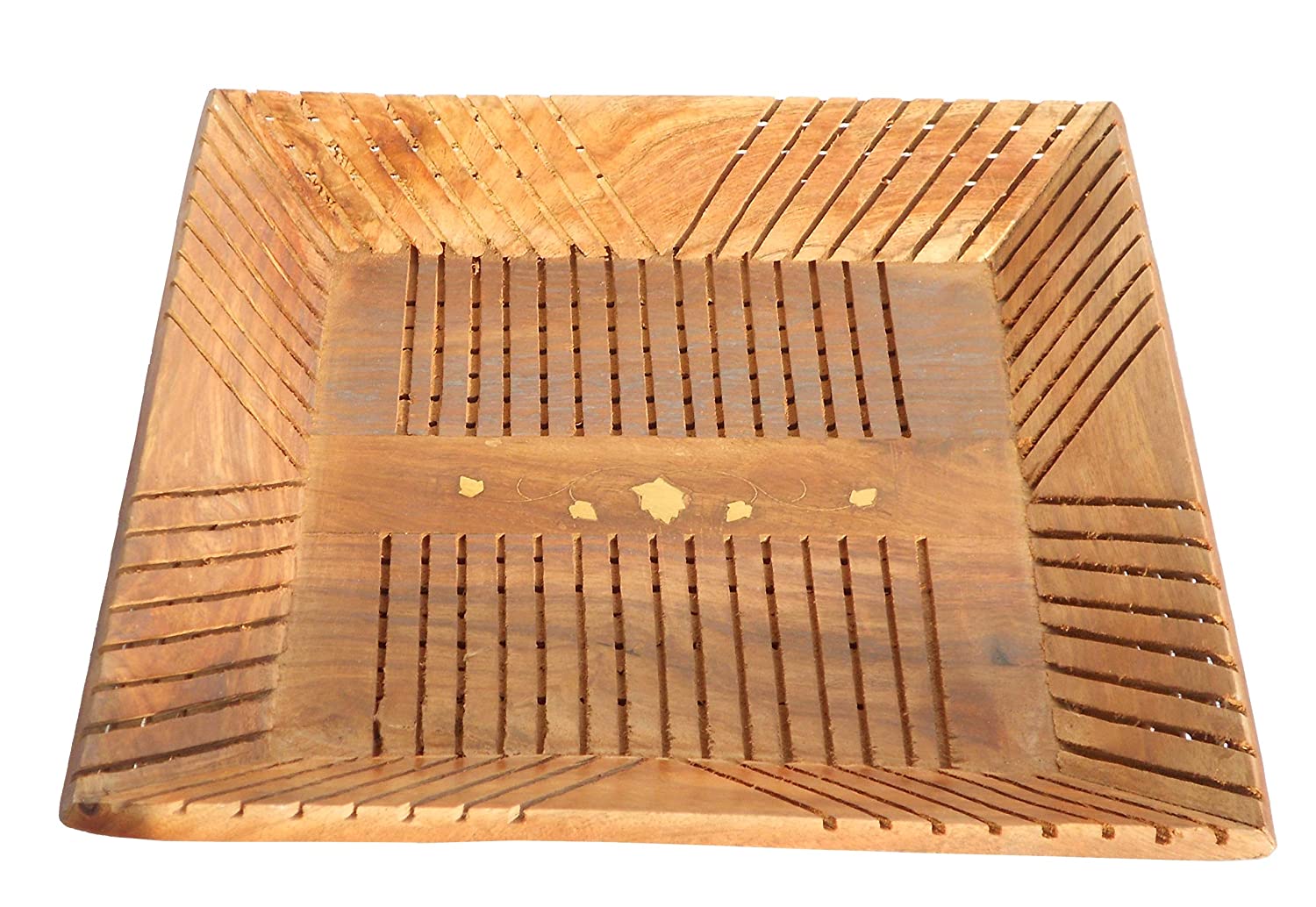 Wooden Food Serving Hand Crafted Carved Tray – Square