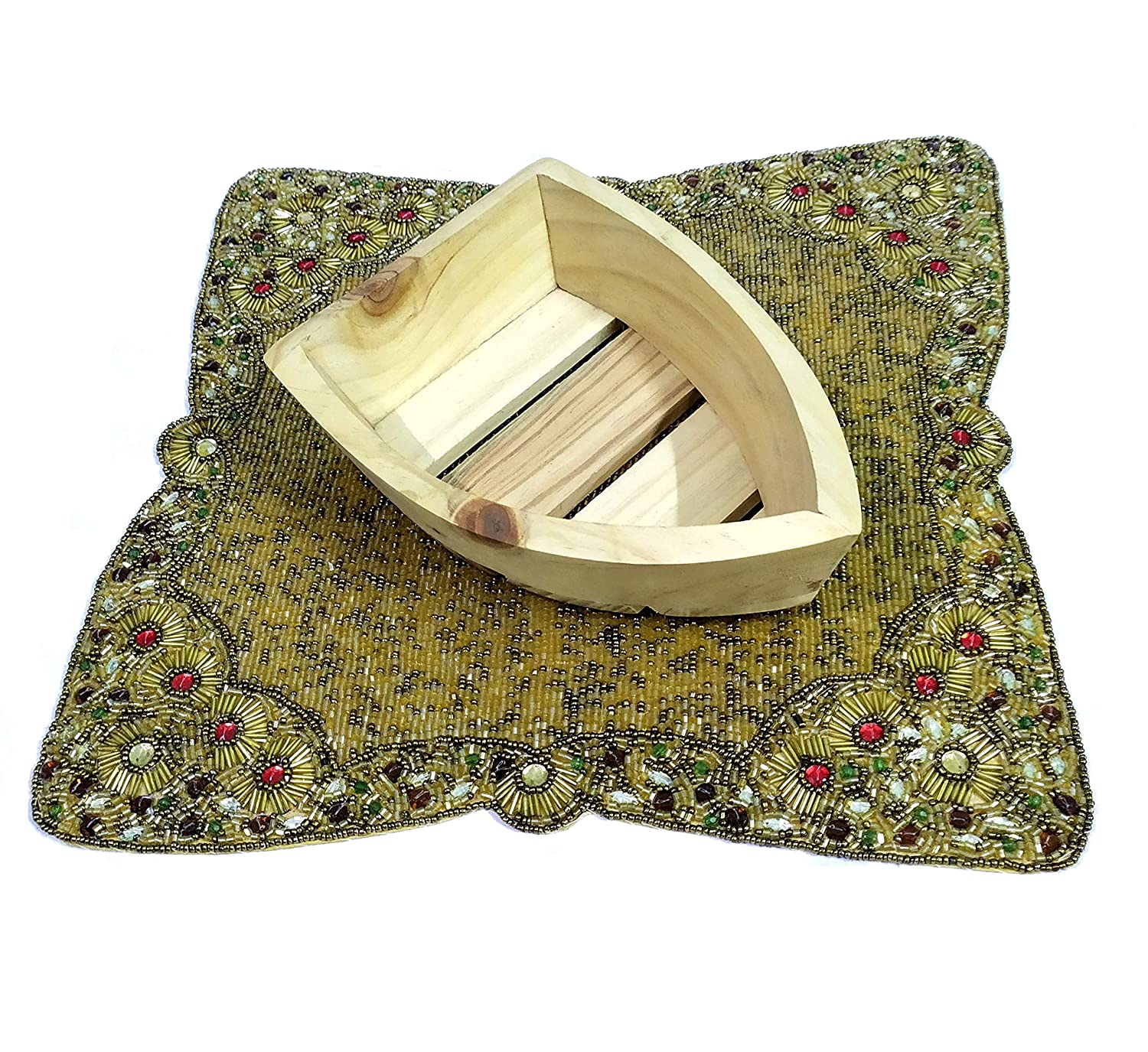 Wooden Food Serving Tray/Basket with Hand Carved Design in Boat Shape