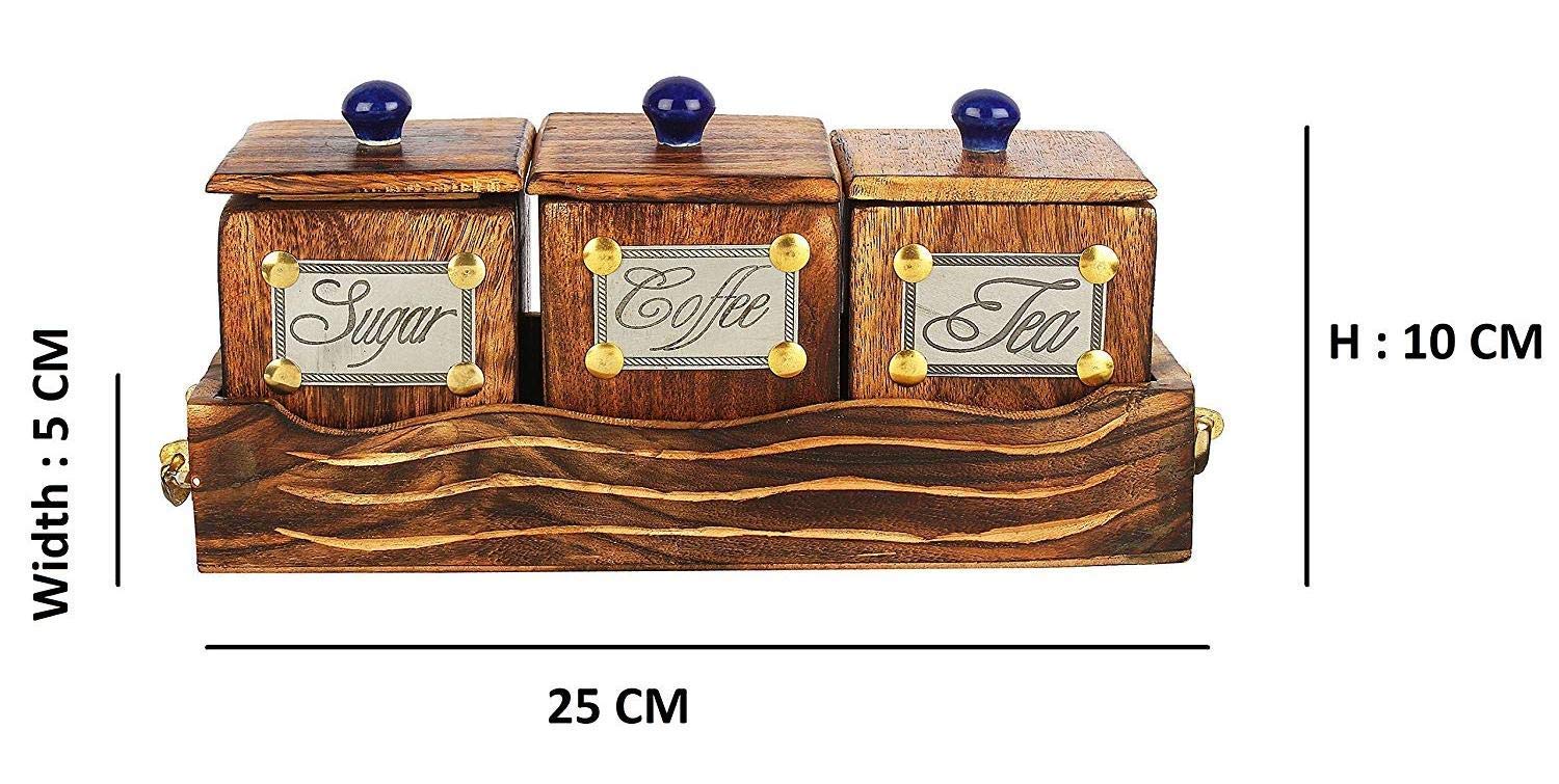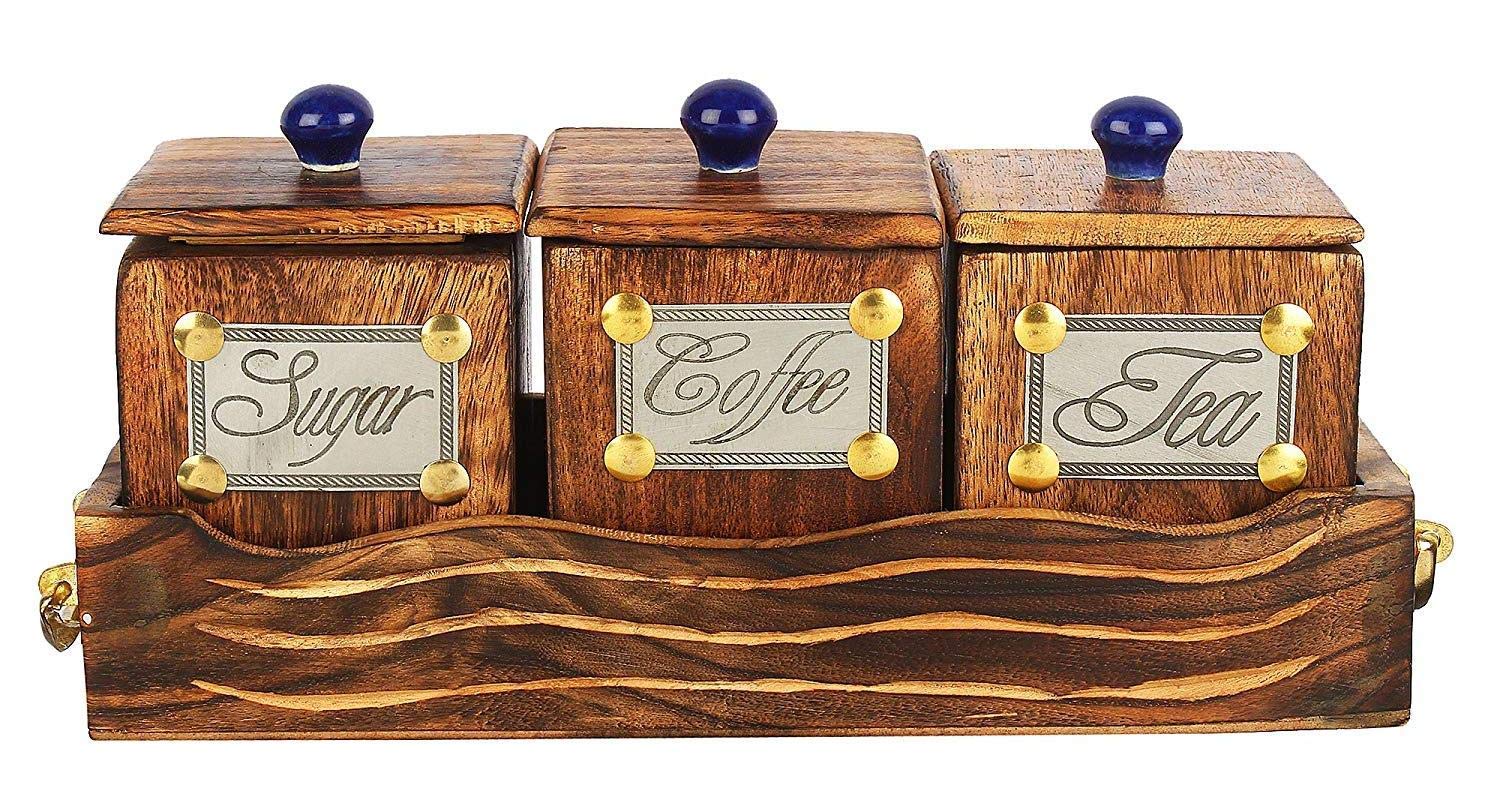 Wooden Handicraft Hand Made Storage / Container Set for Coffee, Tea, Sugar